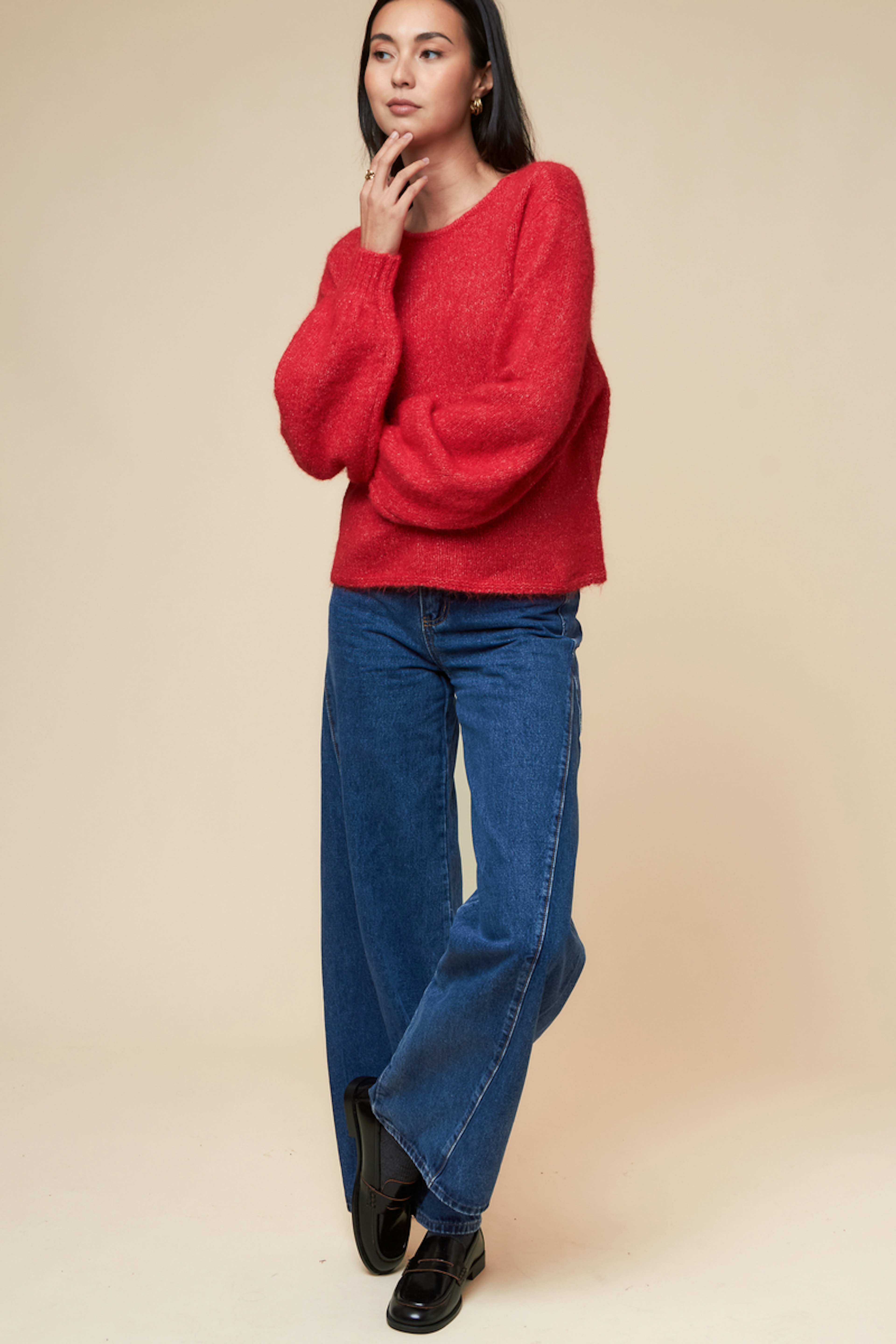 Associez ce pull vibrant à un jean taille haute pour un look décontracté chic cet hiver. • Pull en maille • Dos ouvert avec lacets • Manches longues • Coupe confortable • Texture douce