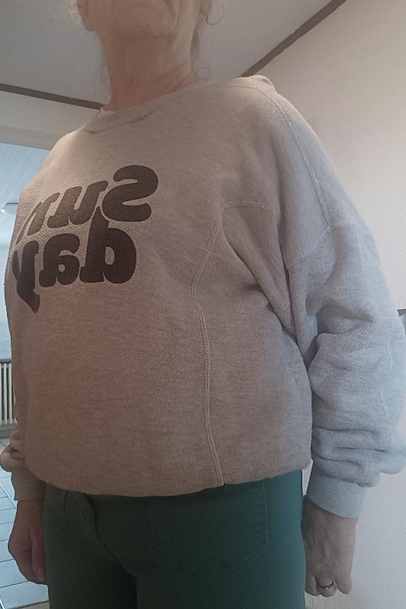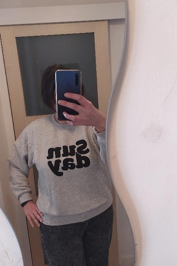 โข Sweat gris chinรฉ ร manches longues โข Col rond โข Sรฉrigraphie "Sunday" noire sur la poitrine