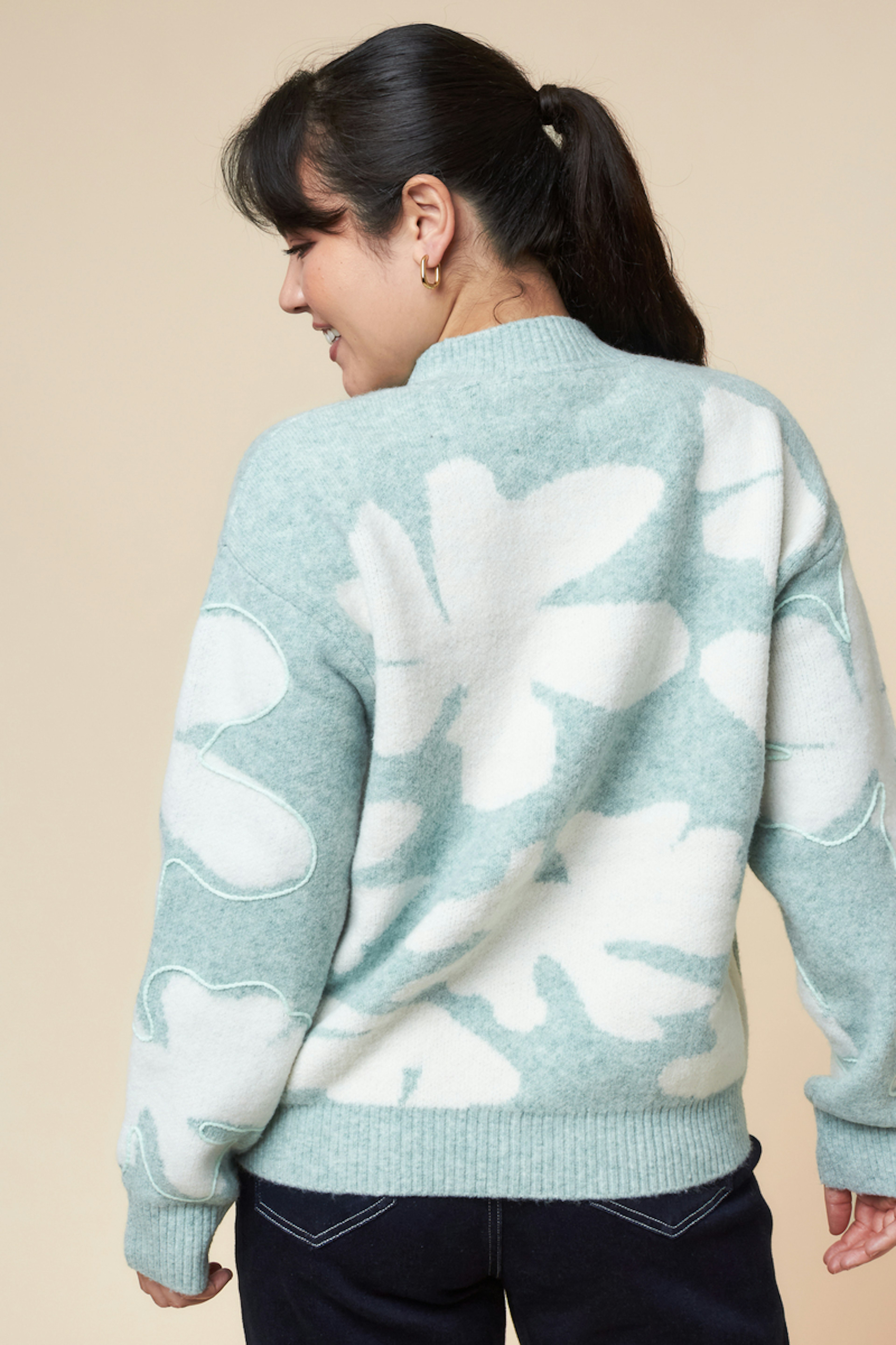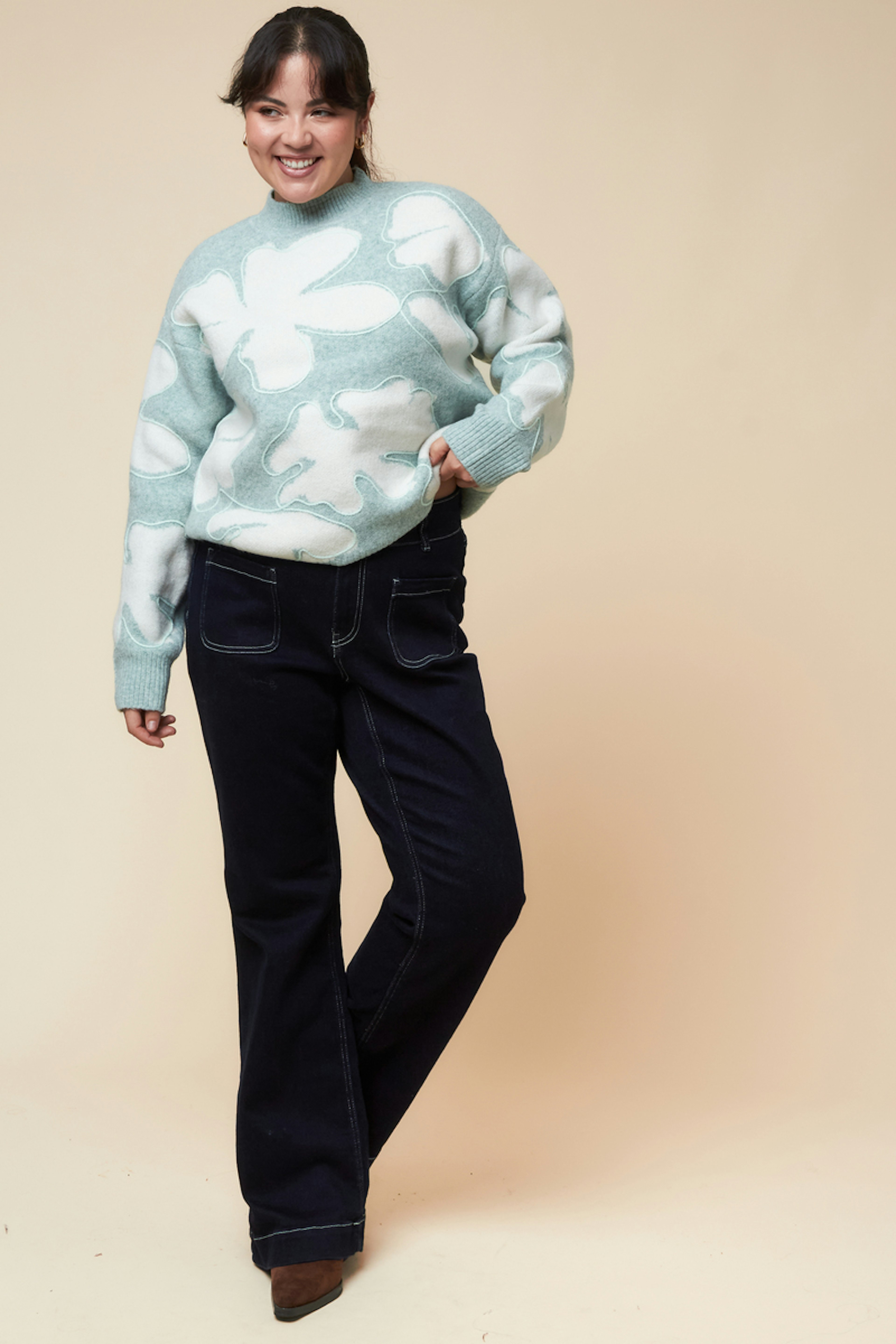 Portez ce pull avec un jean taille haute et des bottines pour un look cosy et tendance cet hiver. • Pull à manches longues • Coupe ample • Col montant • Motif abstrait • Bords côtelés
