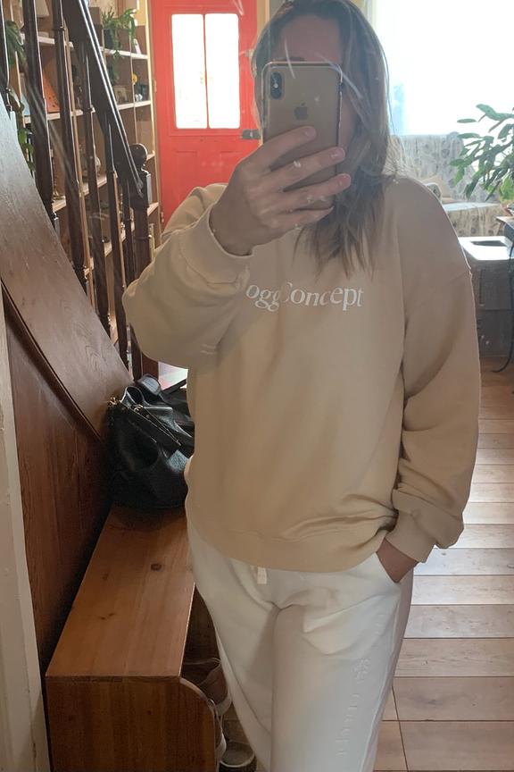 โข Sweatshirt ร manches longues โข Ecriture sur le devant โข Encolure ronde โข Finitions bord-cรดtes โข Coupe oversize