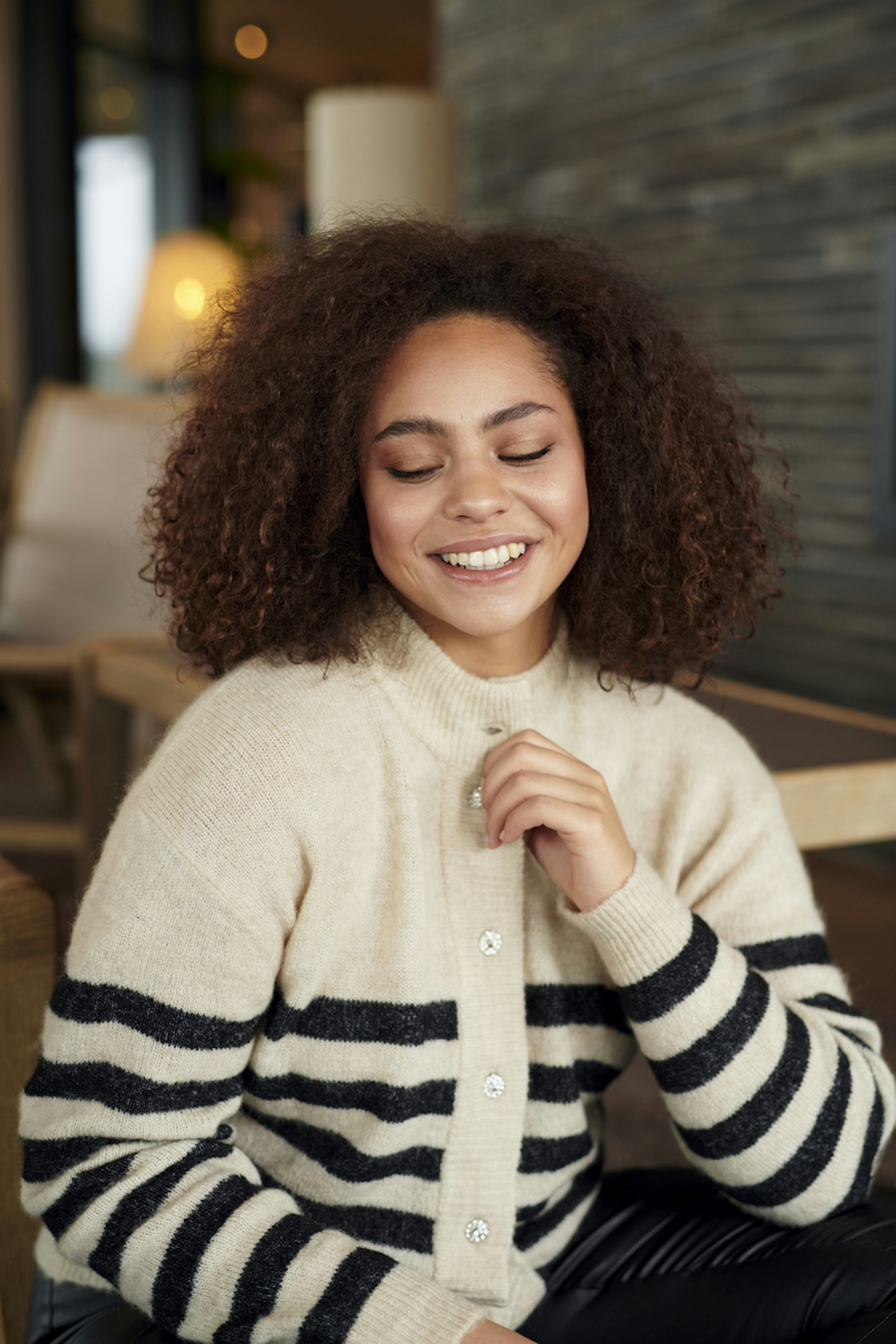 โข Cardigan doux et รฉpais โข Imprimรฉ mariniรจre โข Patte de boutonnage sur le devant โข Contient de la laine et du polyester recyclรฉ