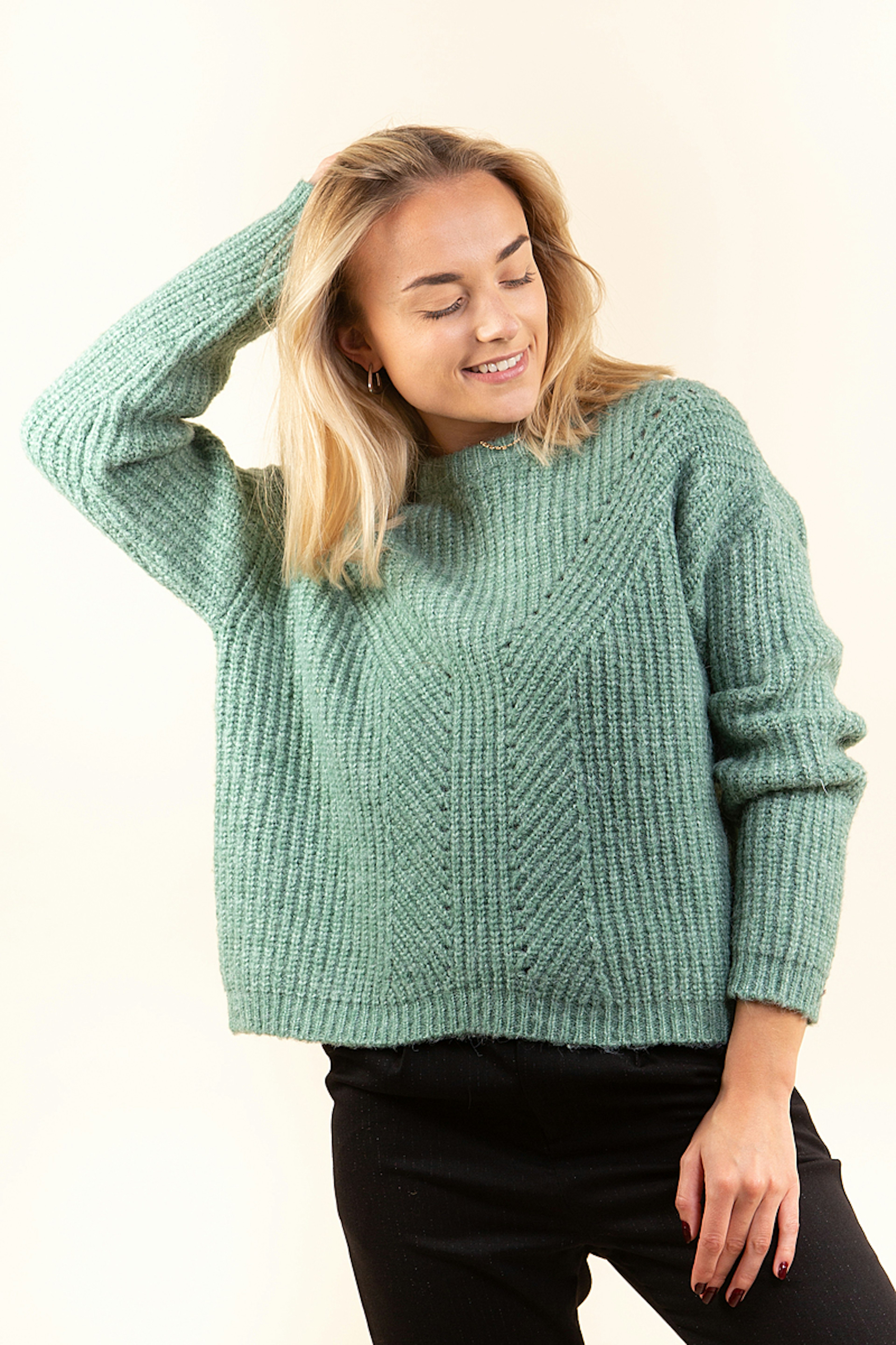 โข Pull vert en maille โข Coloris vert โข Contient de la laine pour vous tenir bien au chaud