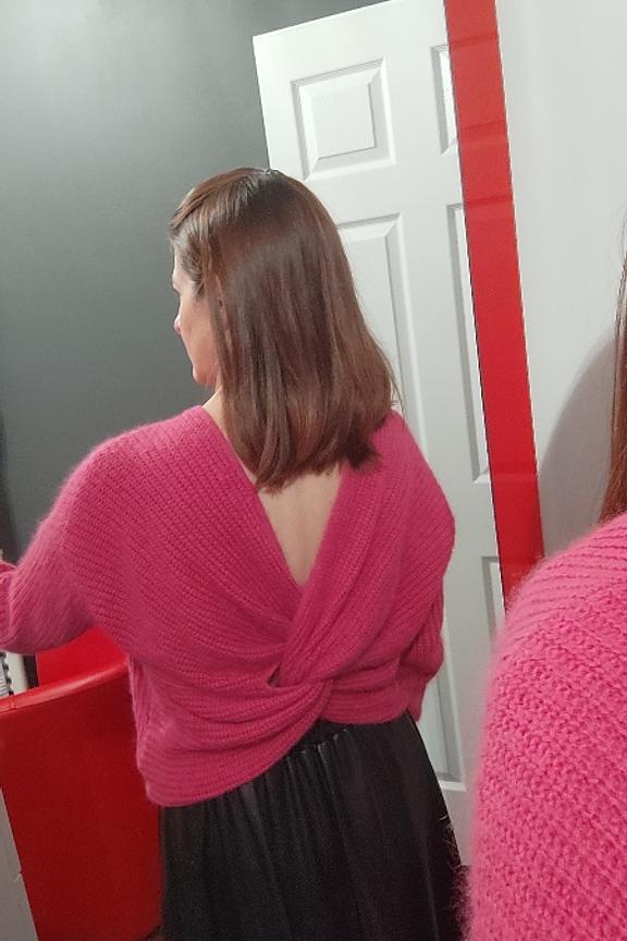 โข Pull rose fuchsia โข Manches longues โข Coupe lรฉgรจrement ample โข Encolure ronde devant et V dans le dos โข Finitions bord-cรดte โข Nลud dans le dos โข Longueur depuis l'รฉpaule 53 cm (pour un 36) โข A porter avec le nลud dans le dos ou sur le devant Si vous hรฉsitez entre deux tailles, choisissez la taille en dessous. Sinon choisissez votre taille habituelle