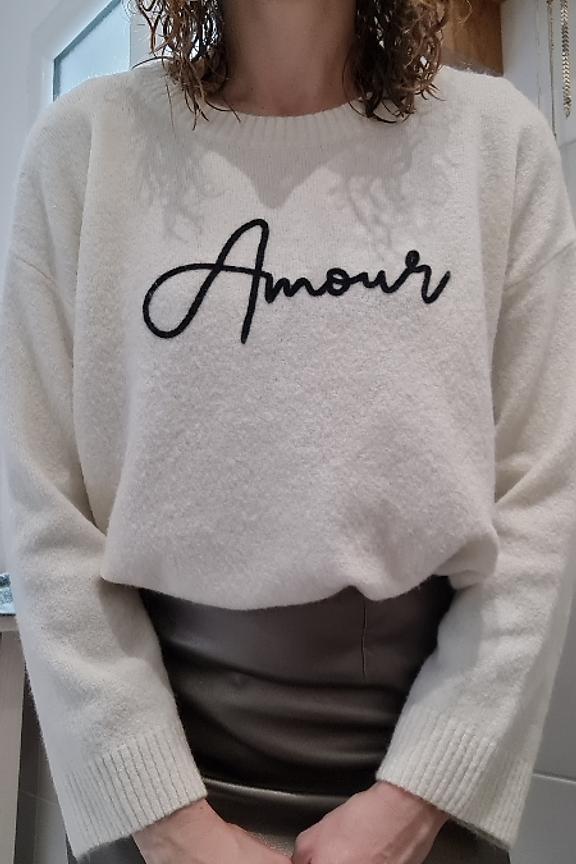 โ€ข Pull ร  encolure ronde โ€ข Broderie "AMOUR" placรฉe sur le devant du pull โ€ข Manches longues โ€ข Volume large