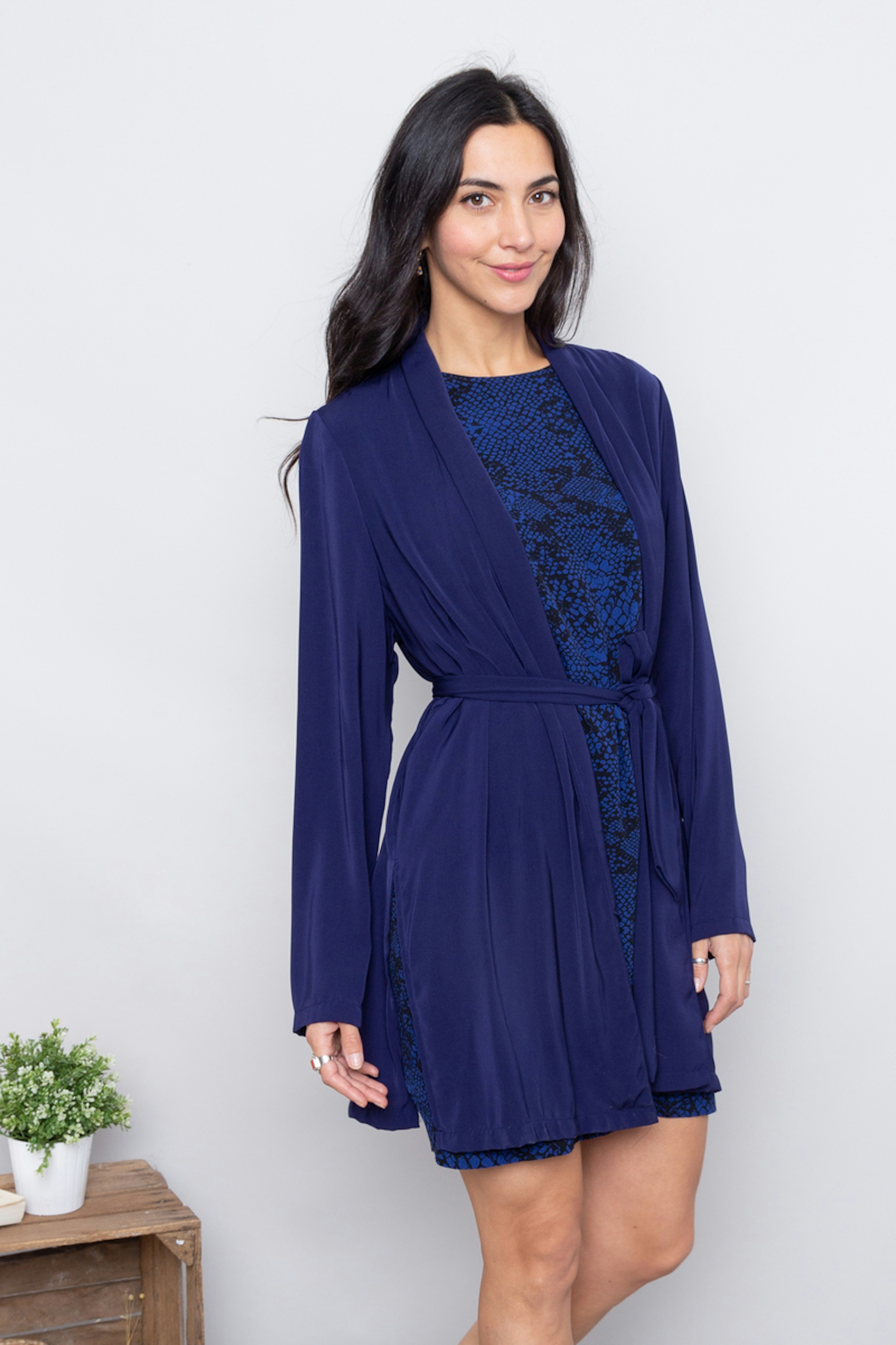 โข Gilet bleu roi โข Manches longues โข Fentes ouvertes sur les extrรฉmitรฉs โข Tissu fluide