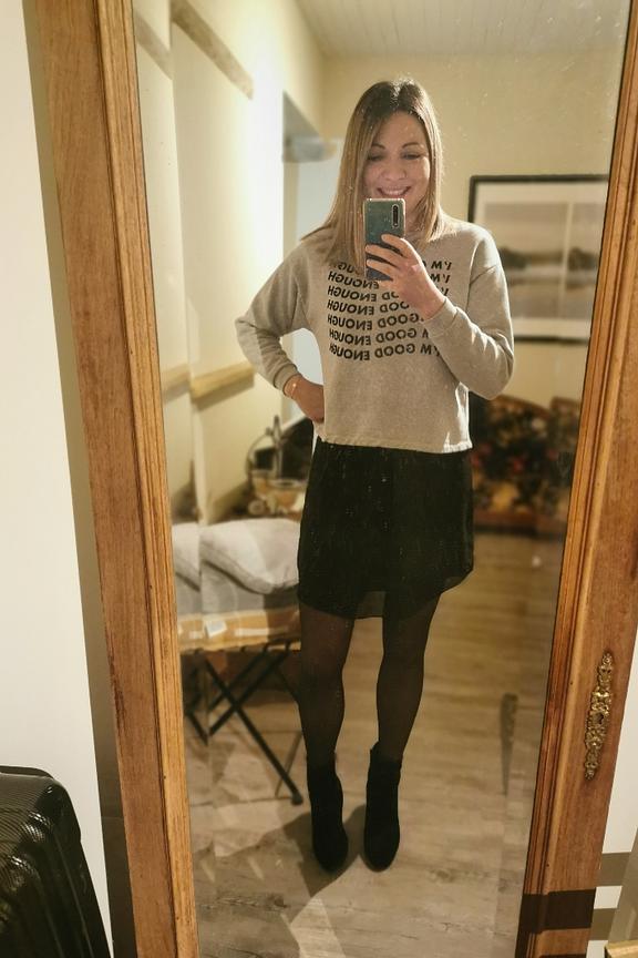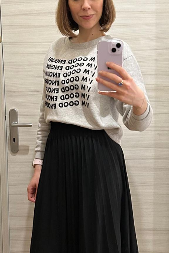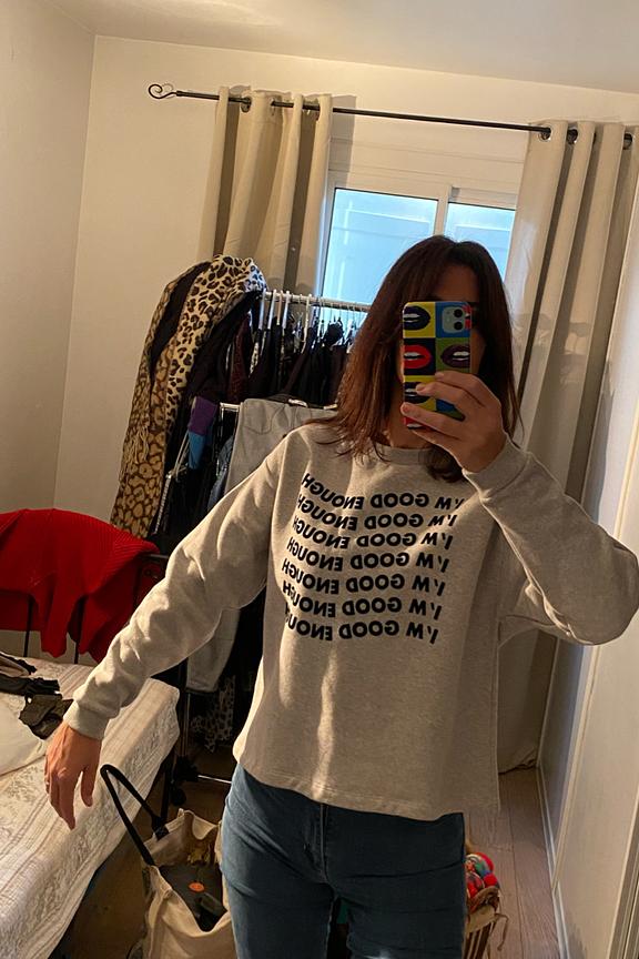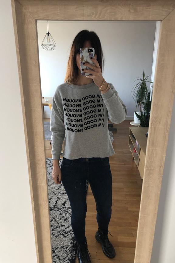 “Coupe bizarre : le sweat est crop, large partout sauf les manches qui sont trop serrées”
