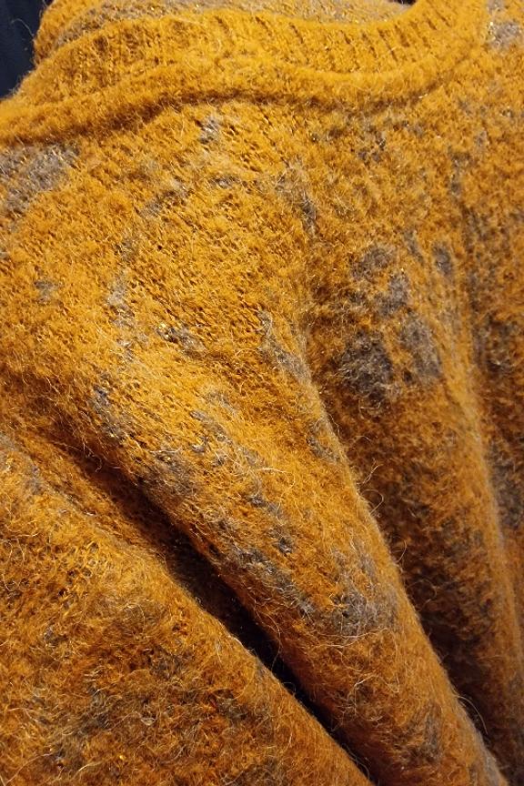 โJoli pull, assez doux. Il a des fils dorรฉs et un lรฉger motif lรฉopard.โ