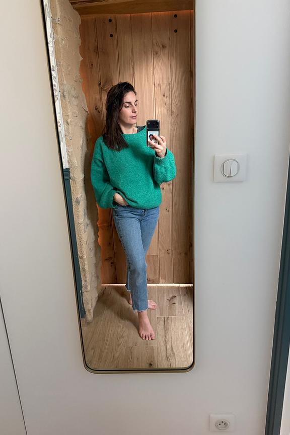 Associez ce pull vert vibrant avec un jean foncé et des bottines pour une allure décontractée mais chic. Parfait pour illuminer l'hiver ! • Pull ample • Manches longues • Col rond • Couleur intense • Finitions côtelées