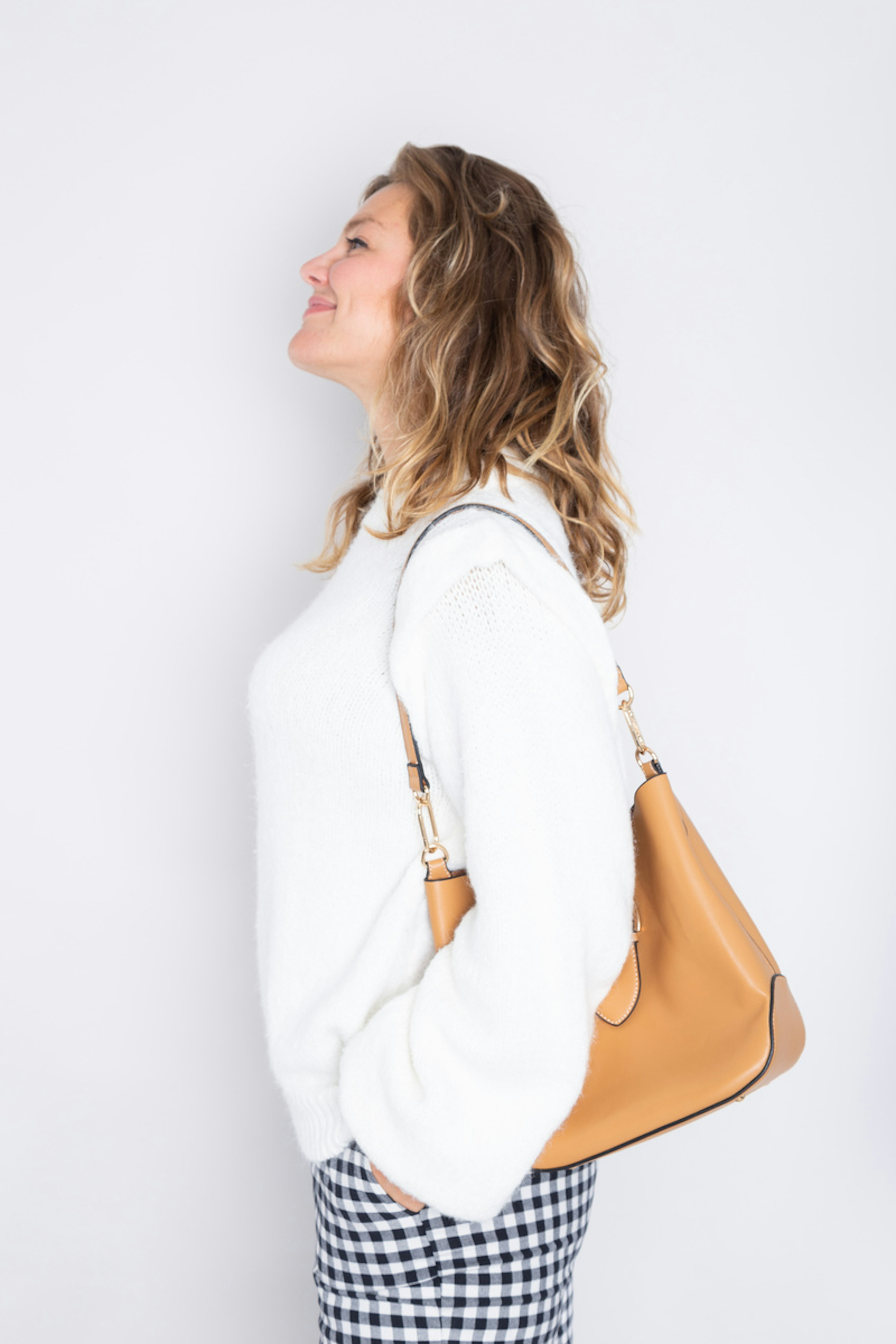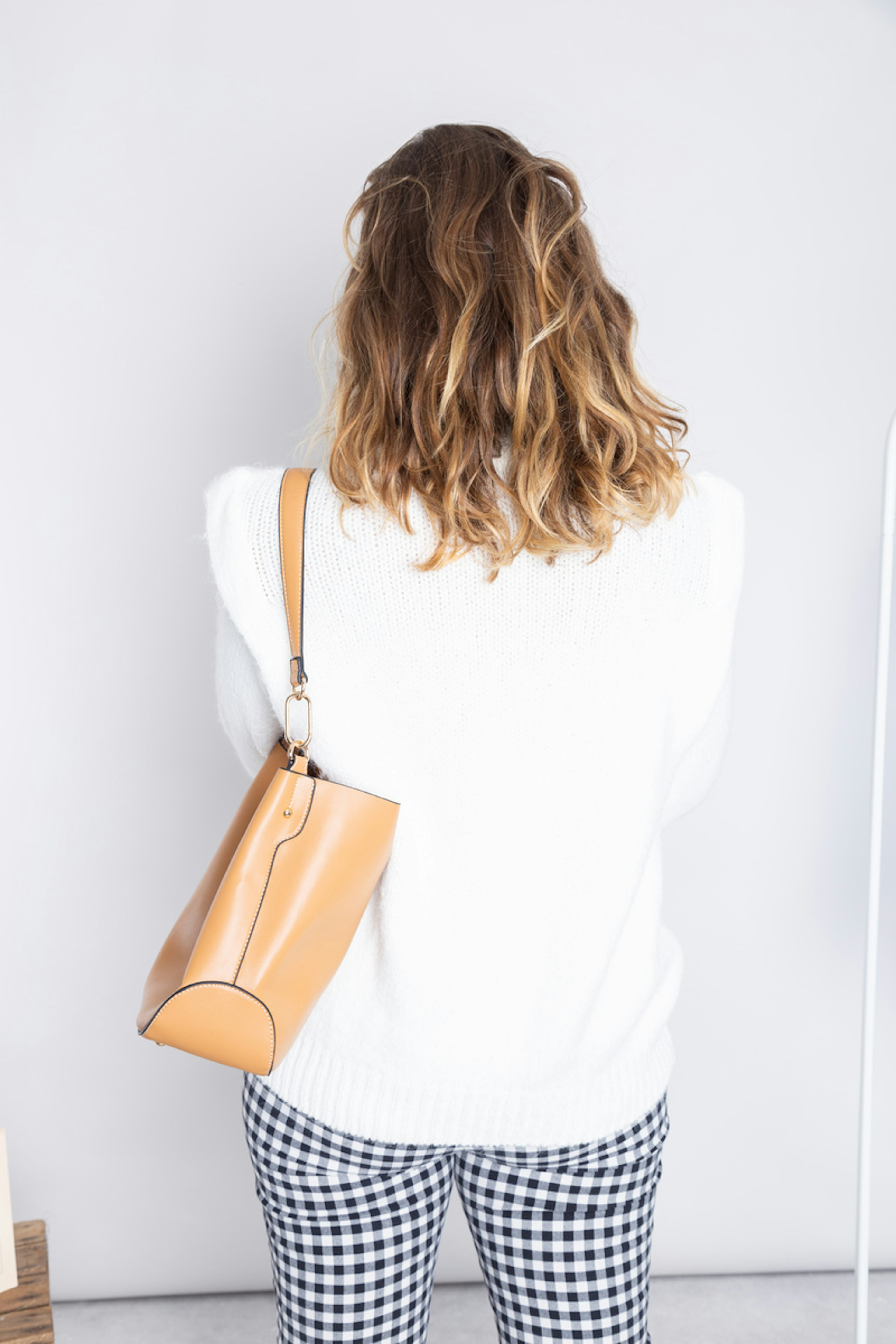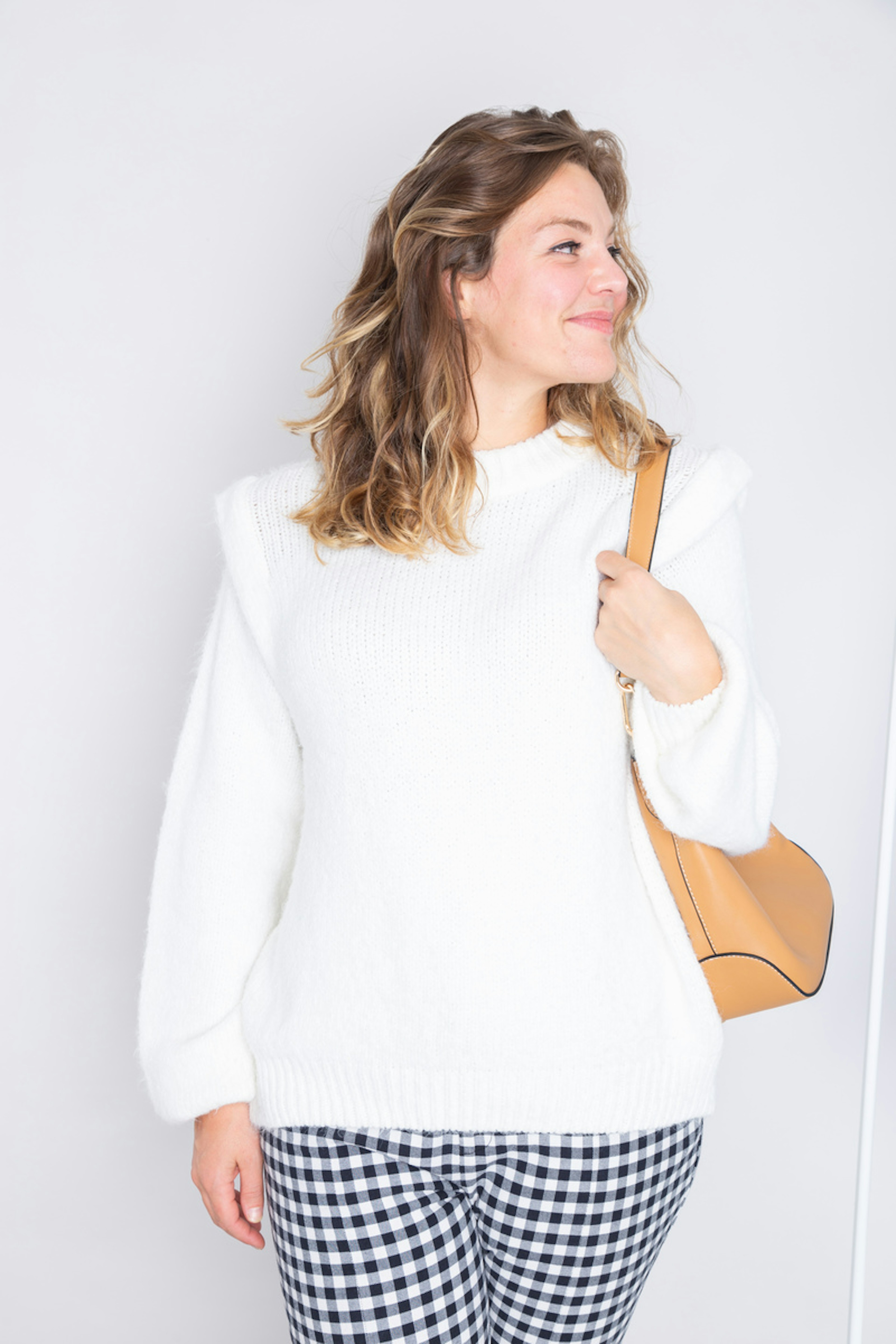 โ€ข Pull en maille blanc โ€ข Coupe loose โ€ข Epaulettes structurantes
