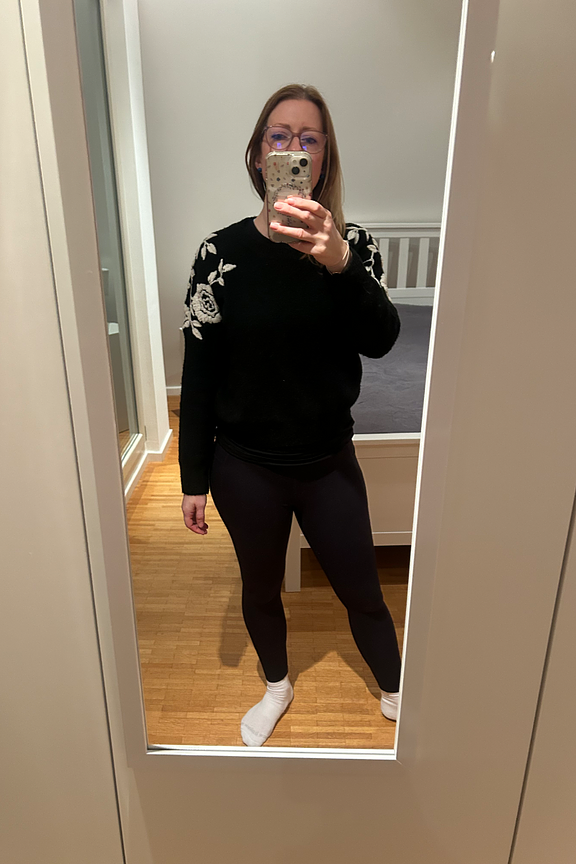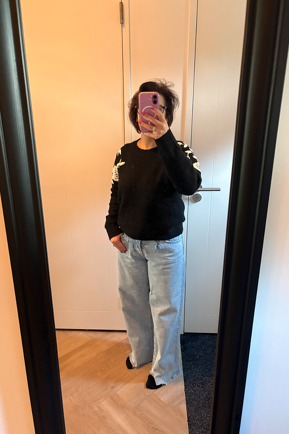 Peaufinez votre look avec ce pull chic accompagné d'un jean blanc et de bottines pour une allure sophistiquée. • Pull avec motifs • Coupe classique • Manches longues • Encolure ronde • Motif floral brodé