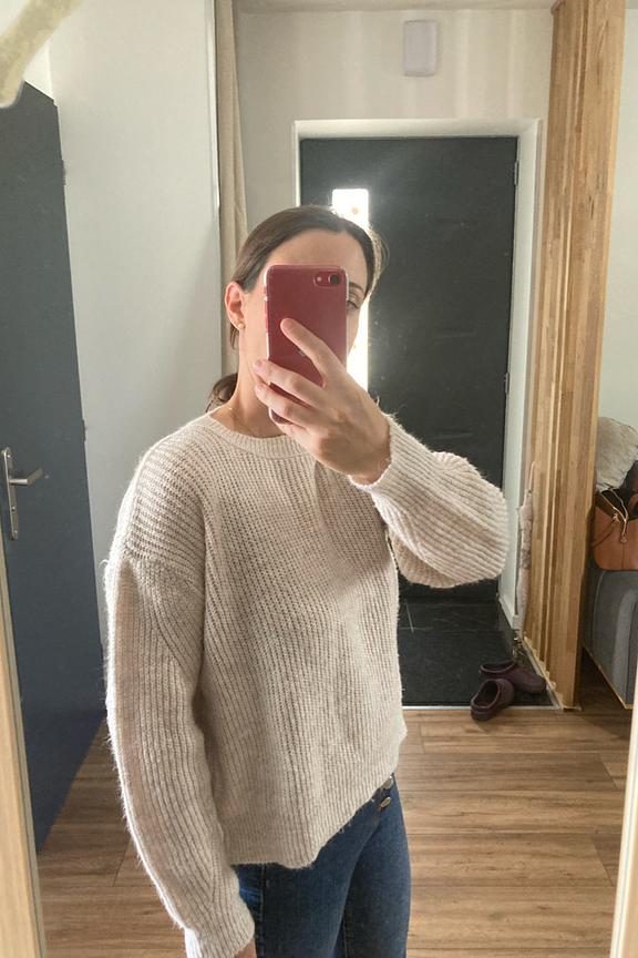 โLe pull ne ressemble pas vraiment ร la photo, la couleur est plutรดt crรจme et il nโa pas de fini รฉvasรฉ sur le bas du pull ni la mรชme texture. Cependant il est trรจs douille et ne gratte pas.โ