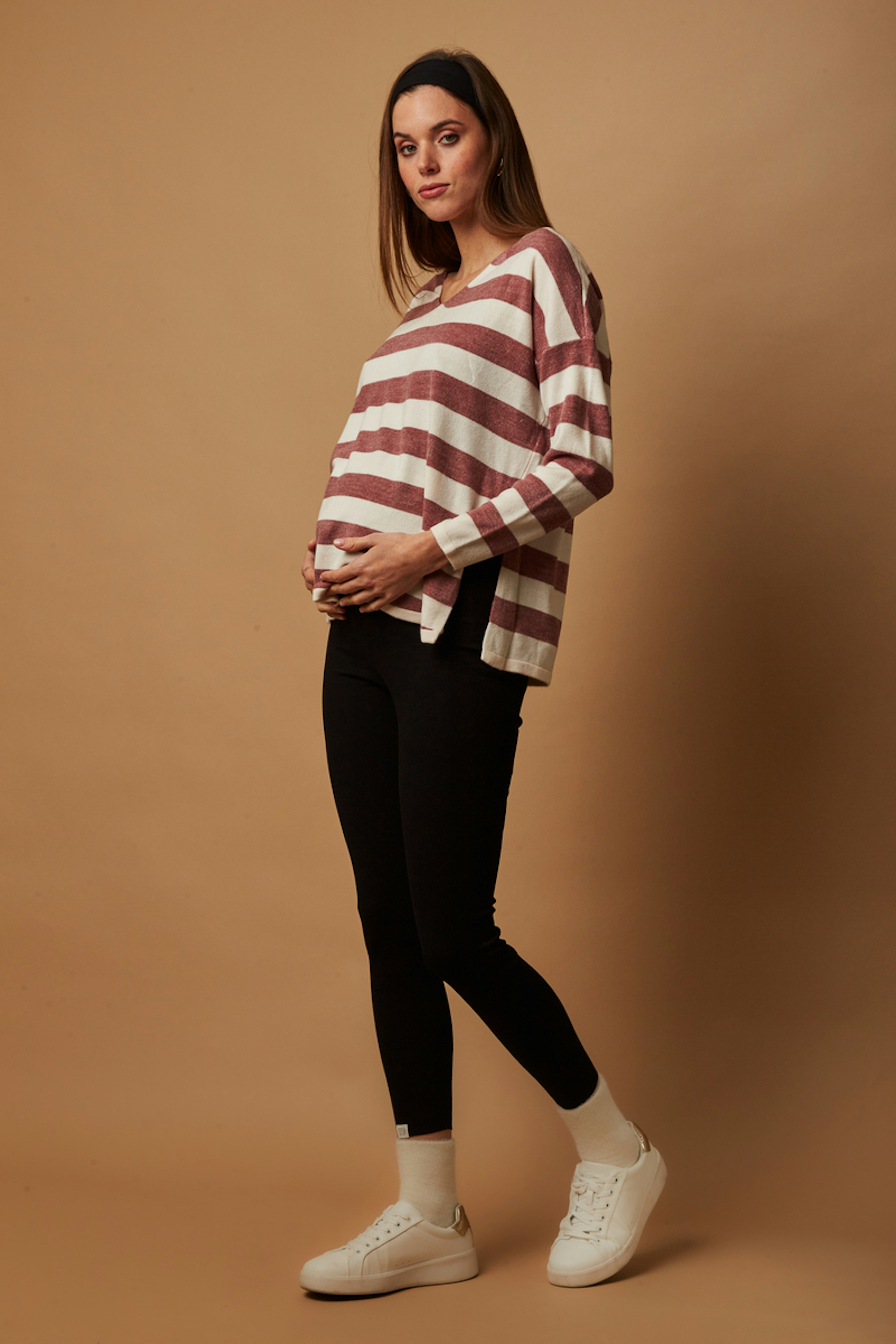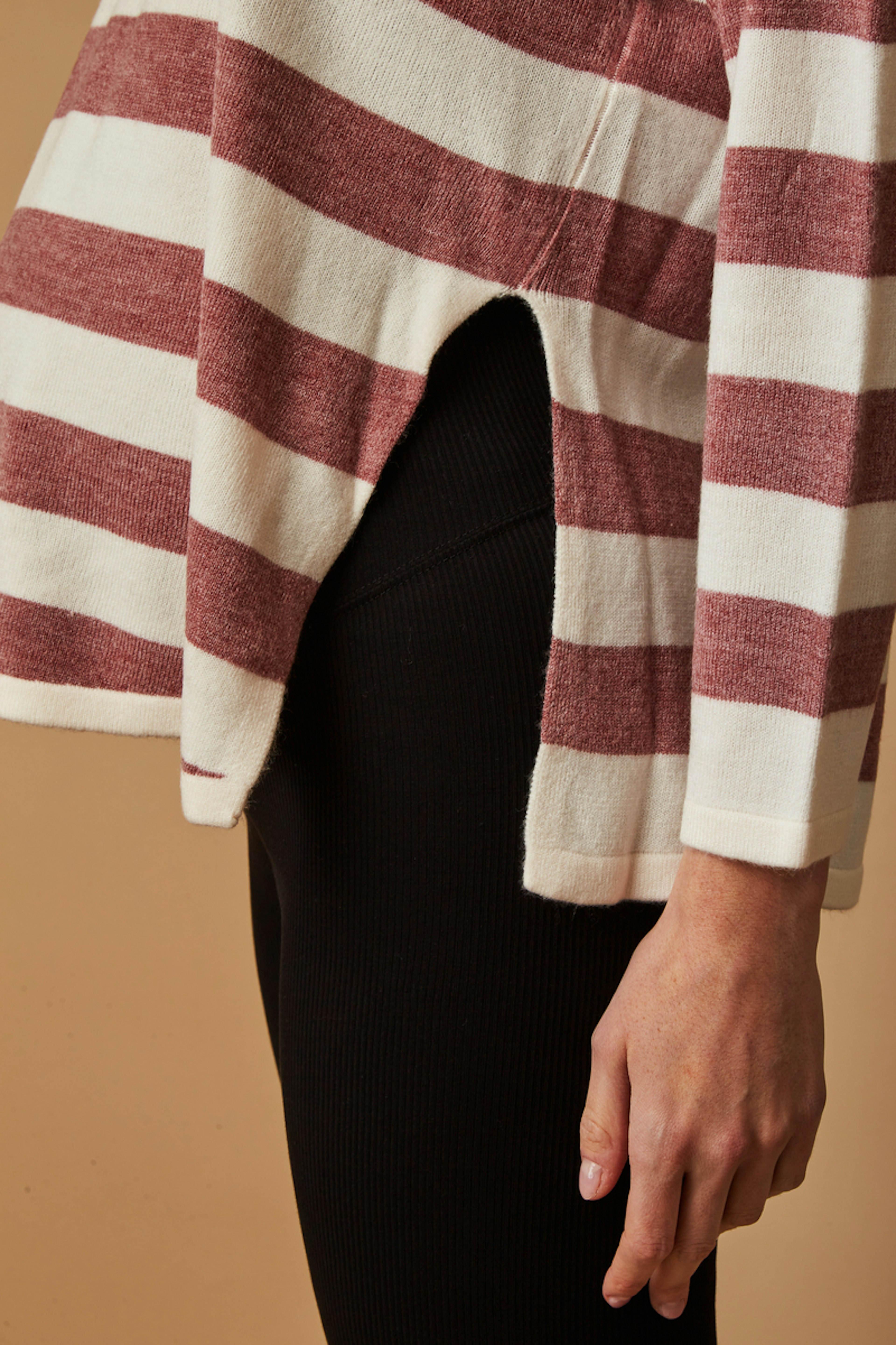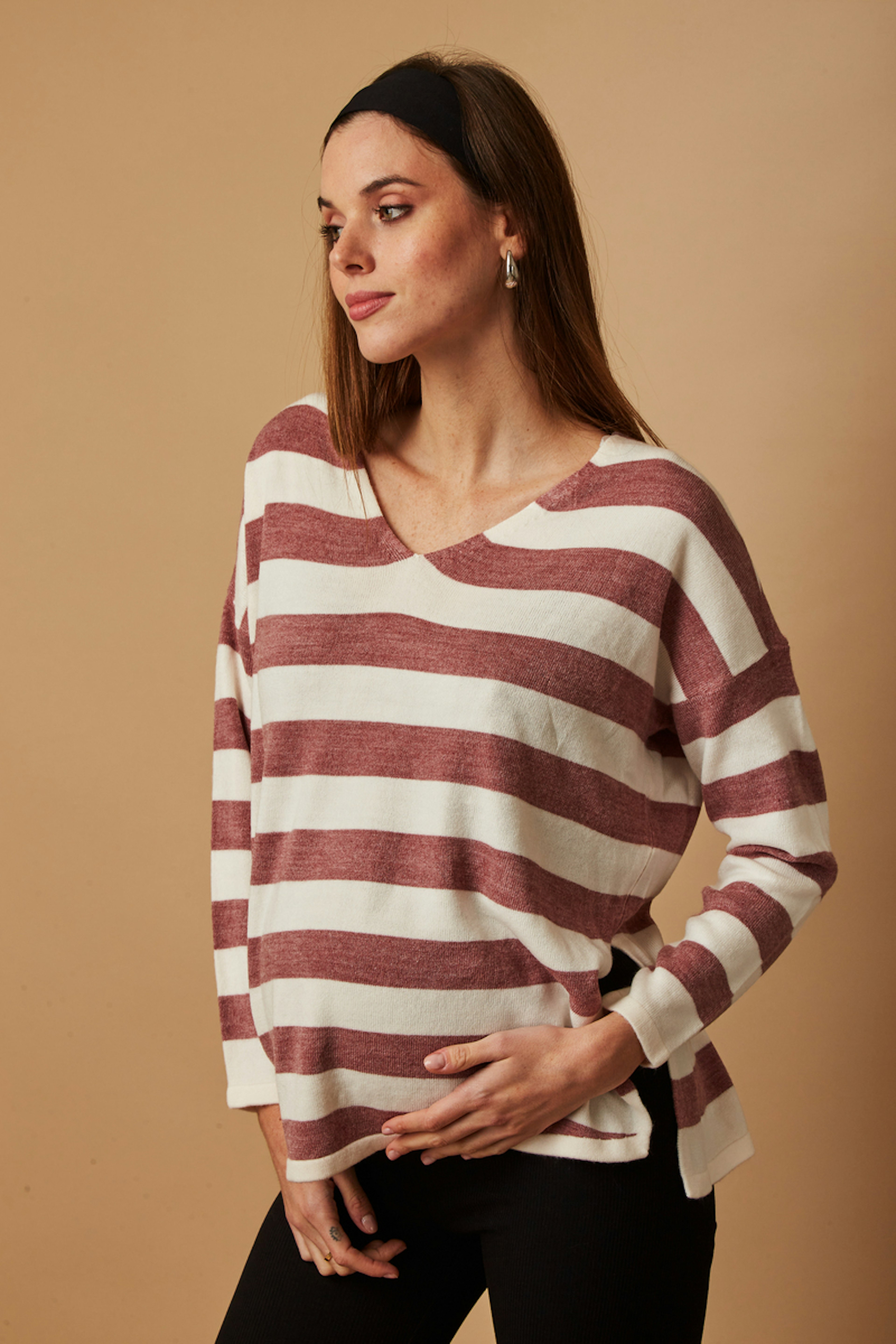 Enveloppez-vous de douceur avec ce pull, parfait pour un look dรฉcontractรฉ chic ร toute saison. โข Pull ample โข Coupe confortable โข Rayures horizontales rouge