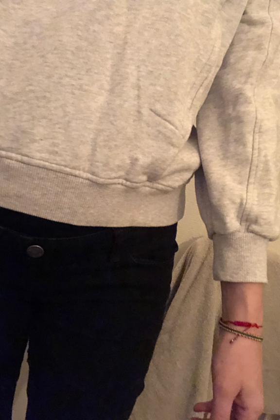 โ€œAttention taille trรจs petit ! On dirait mรชme quโ€™il y a eu un problรจme de lavage par rapport ร  la photo du site. Ne cachait pas lโ€™รฉlastique de mon jean de grossesse (je suis ร  moins de 4 mois donc petit bidou), cata dรจs que je levais les bras. Manches trรจs courtes รฉgalement.โ€