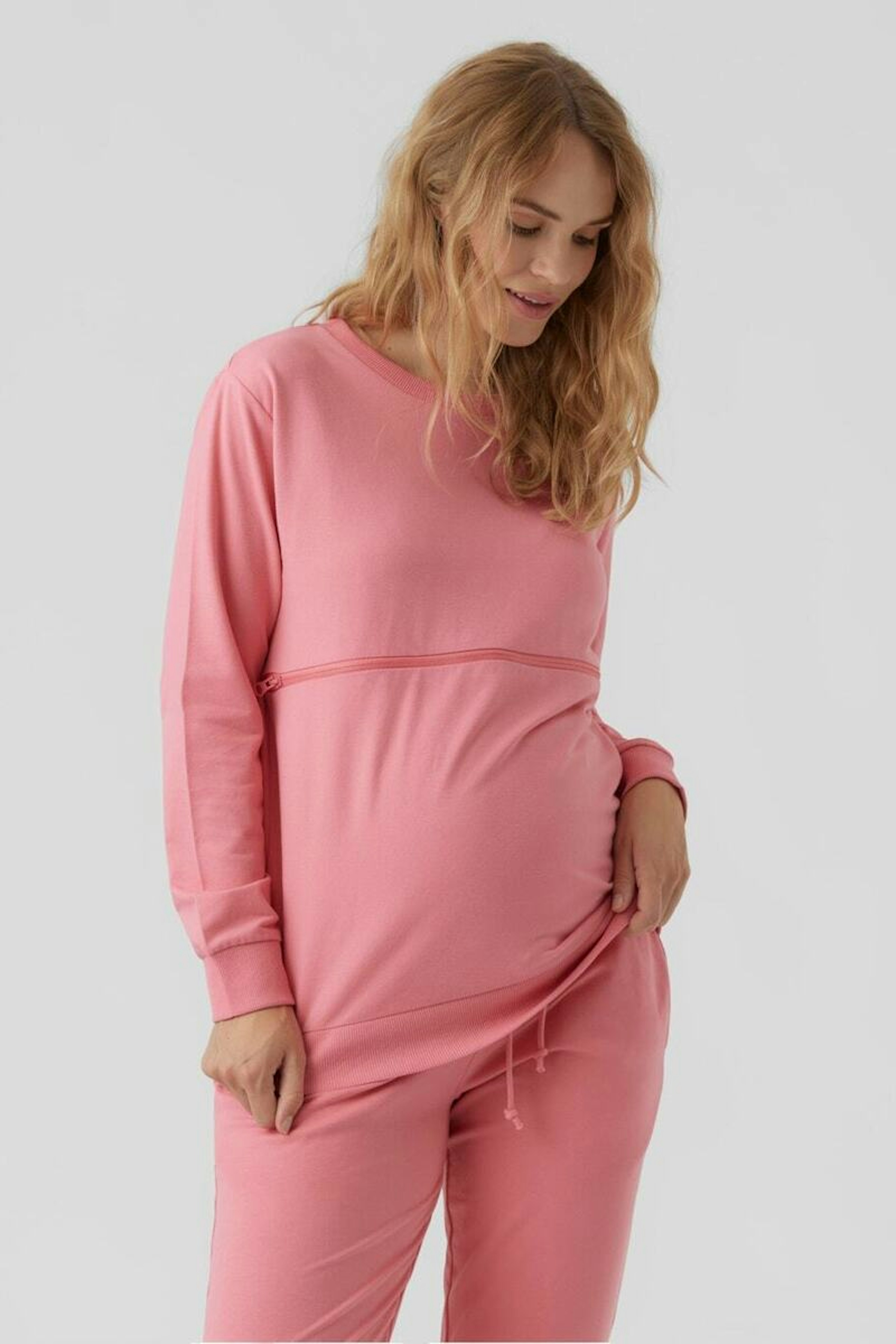 โข Sweat de grossesse rose fluo โข Partie amovible pour allaiter facilement โข Col rond โข Contient du polyester recyclรฉ