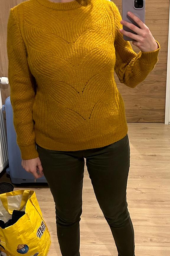 โข Pull moutarde โข A grosses mailles โข Coupe slim et ajustรฉe โข Longueur normale โข Manches longues โข Longueur des manches : 60 cm en taille S โข Longueur totale : 61 cm en taille S