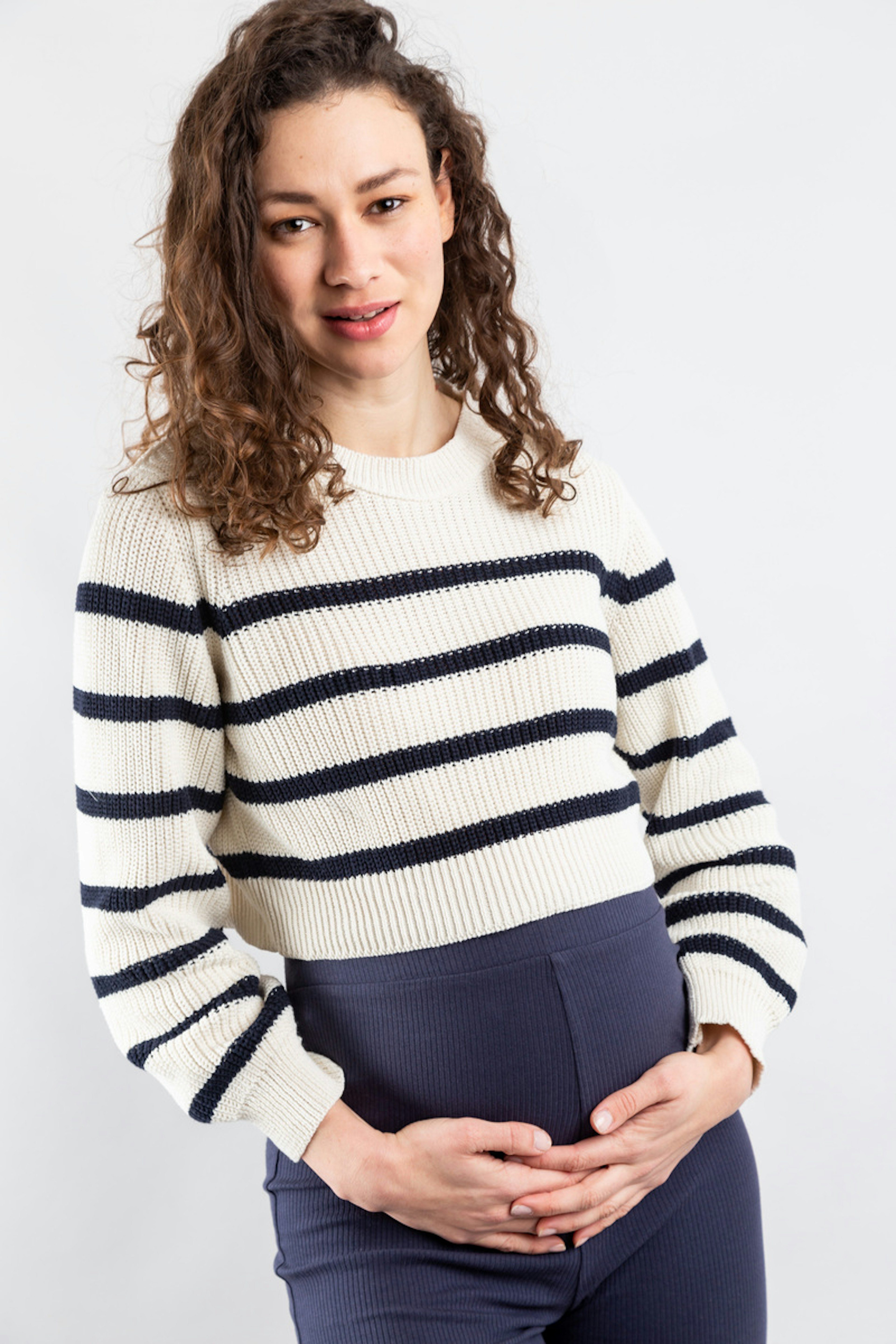 โข Crรฉez un look superposรฉ et รฉlรฉgant avec des styles en tricot doux pour vous garder confortable et au chaud tout au long de l'annรฉe โข Pull en maille blanc รฉcru ร imprimรฉs rayรฉs โข Poignets cรดtelรฉs โข Longueur courte โข Manches longues rรฉguliรจres โข Col montant โข Composรฉ ร 50% de coton recyclรฉ