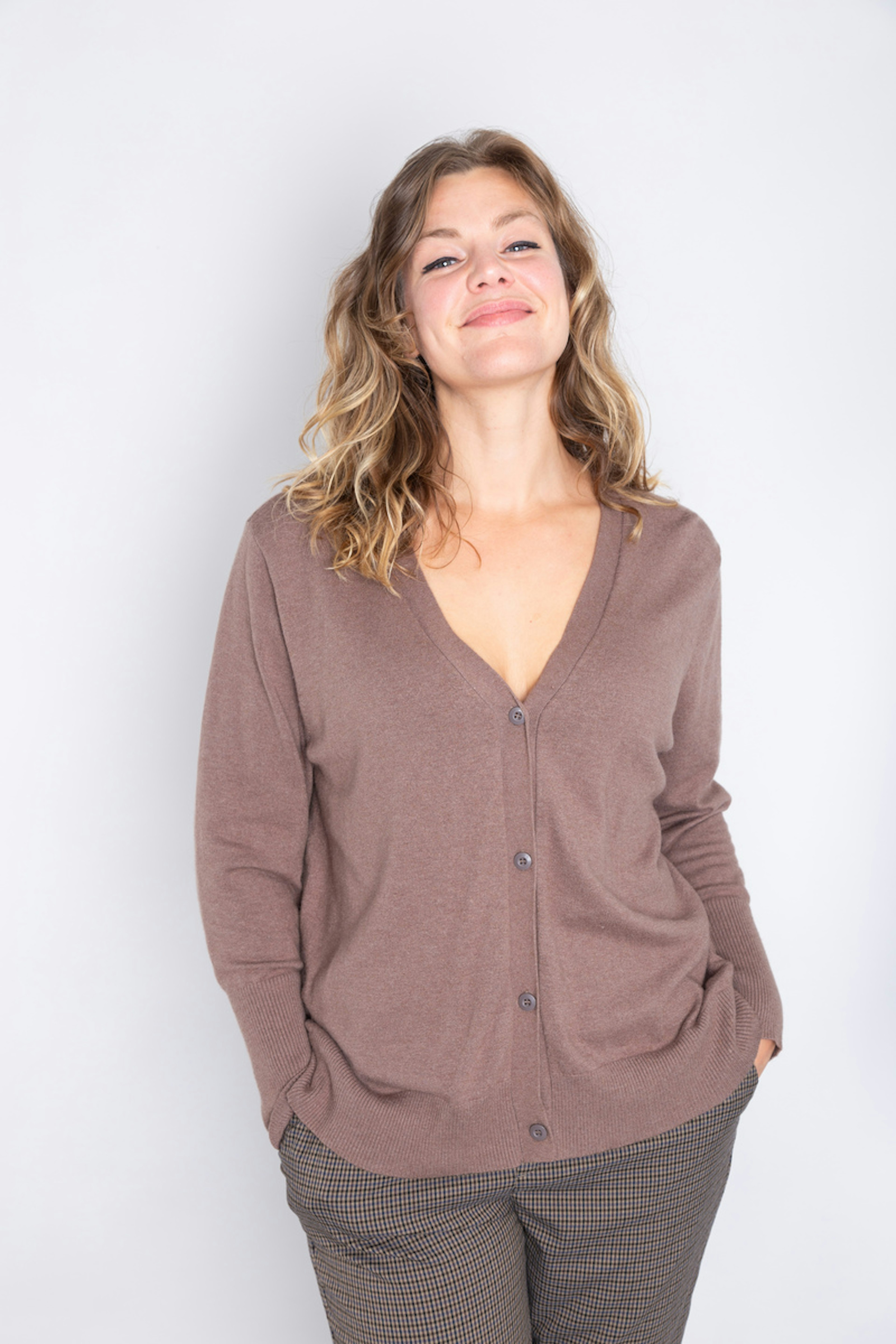 โ€ข Gilet marron โ€ข Boutons sur le devant