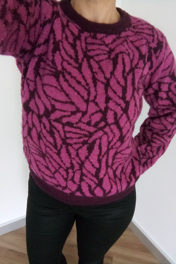 โข Manches longues โข Encolure ronde โข Coupe ample โข Finitions bord-cรดtes โข Longueur depuis l'รฉpaule 55 cm (pour un 36)