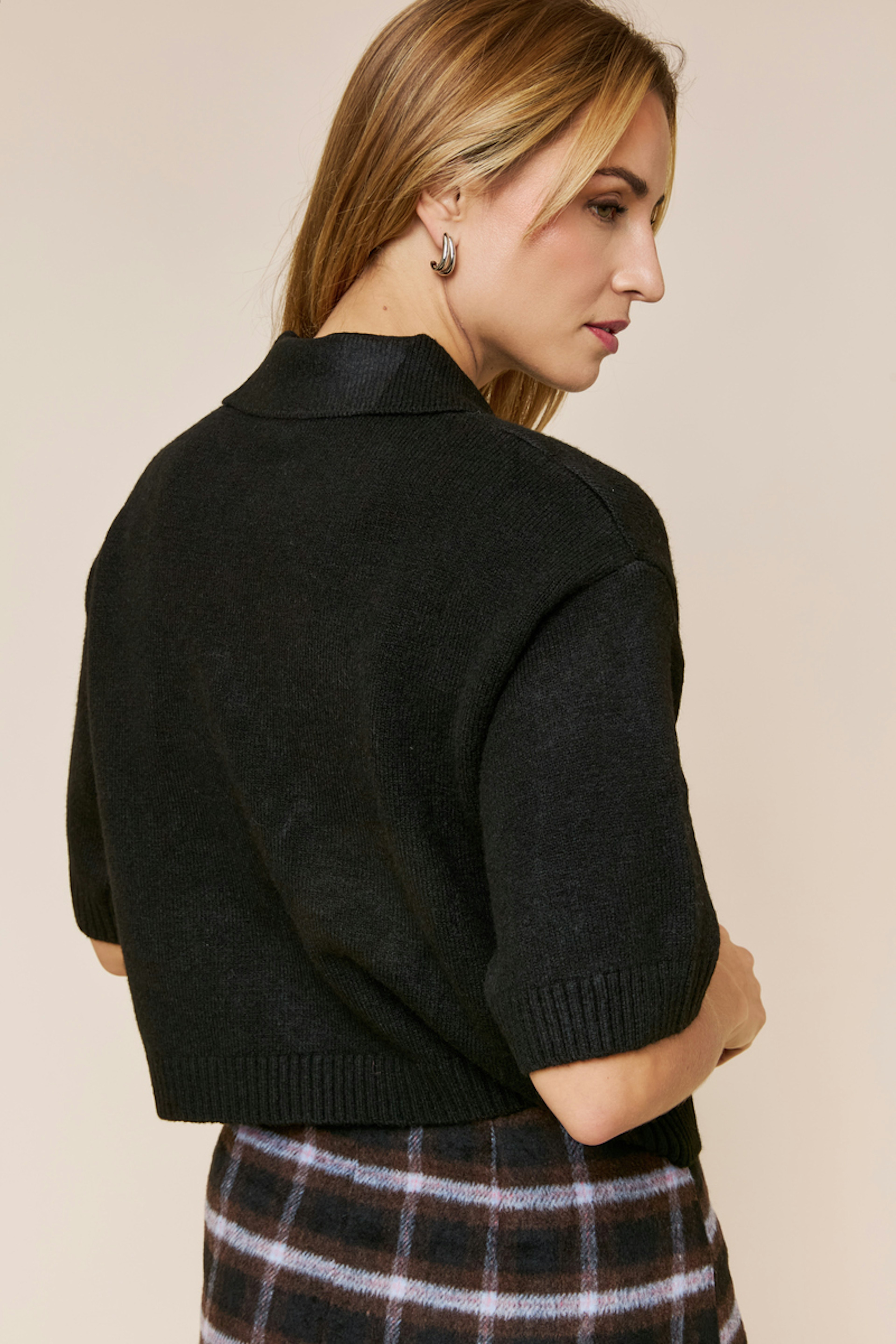 Associez-le avec un pantalon à carreaux et des bottines pour une allure élégante cet hiver. • Pull à manches courtes • Coupe légèrement ample • Col chemise • Boutons décoratifs • Ourlet côtelé