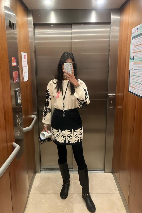 “Magnifique et taille bien. Seul défaut=pas très chaud. Idéal avec un tshirt thermique crème en dessous”