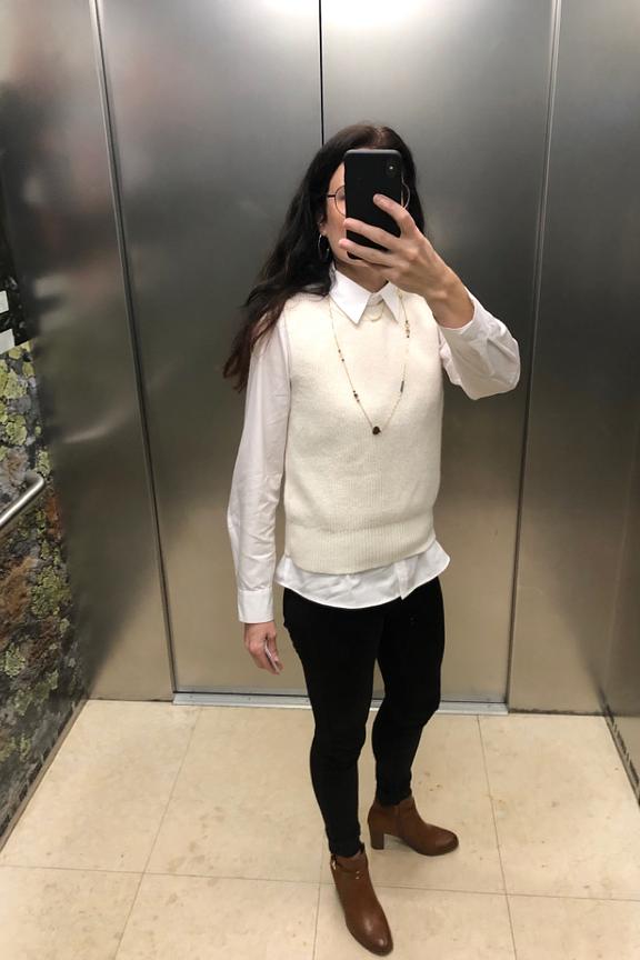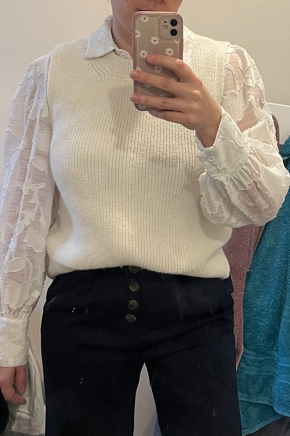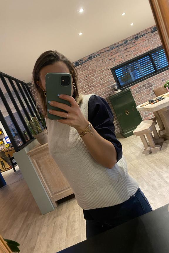โข Pull sans manche femme ecru โข En laine mรฉlangรฉe โข Col rond โข Sans manche