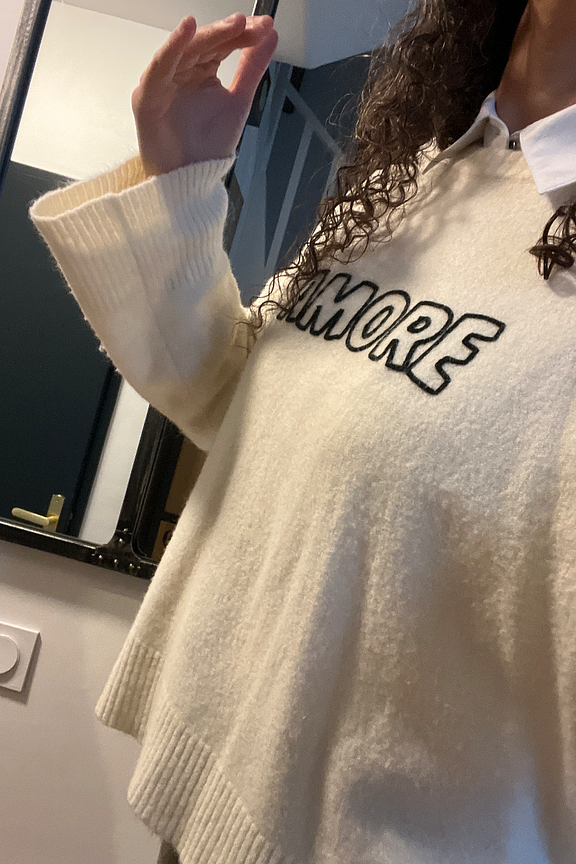 Associez ce pull avec un jean taille haute et des bottines pour un look chic et décontracté en hiver. • Pull large à message • Coupe ample et décontractée • Manches longues • Encolure ronde • Détails de fentes sur les côtés • Message brodé "AMORE"