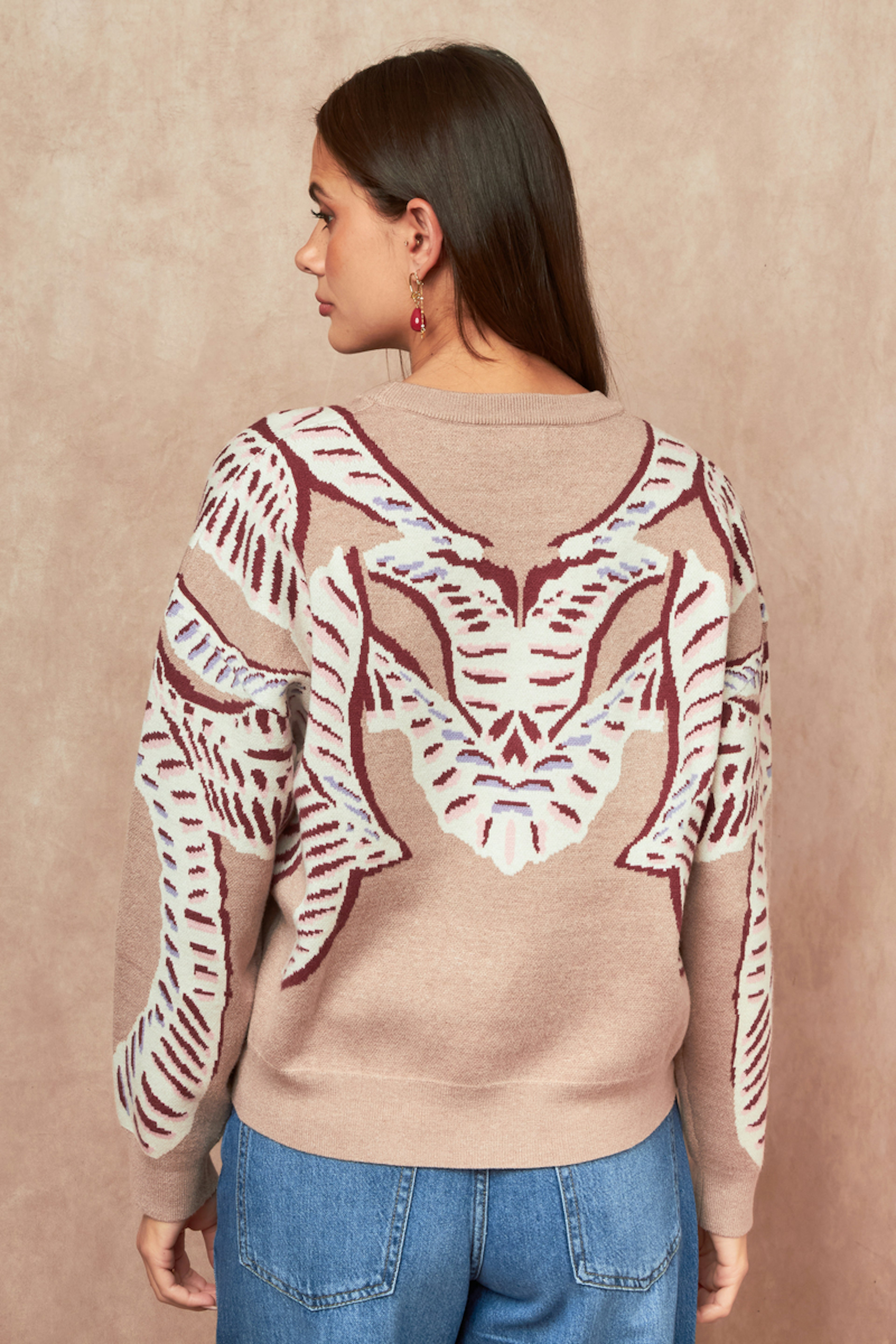 Associez ce pull à un jean slim et des bottines pour une tenue hivernale chic et décontractée. • Pull en laine • Coupe ample • Manches longues • Col rond • Motif imprimé