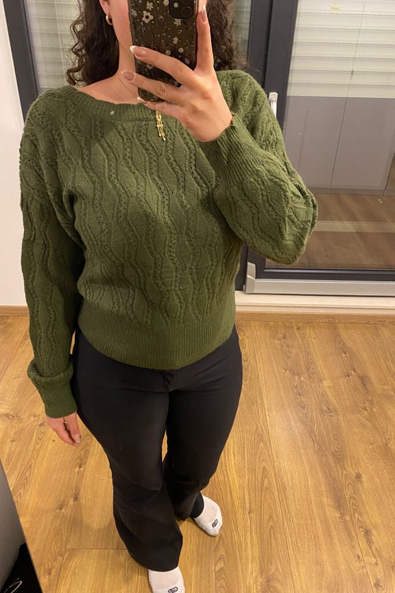Le pull Romane est une piรจce de tricot qui respire l'รฉlรฉgance. Dotรฉ d'un col en V cache-cลur profond, ce pull offre un style fรฉminin et sรฉduisant. Sa maille douce et confortable vous enveloppe de chaleur et de style. โข Pull kaki avec manche bouffante avec maille โข Dos nu cache-cลur โข Col haut โข Lรฉgรจrement ajourรฉ โข La taille unique convient du 34 au 42 โข Contient de la laine
