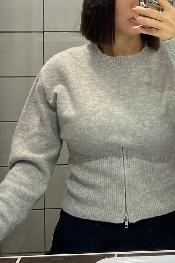 Ce pull se marie à merveille avec un jean taille haute et des bottines pour un look hivernal chic et chaleureux. • Pull gris • Coupe droite • Manches longues • Col montant • Fermeture éclair dissimulée