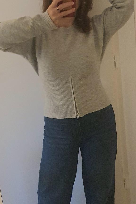 Ce pull se marie à merveille avec un jean taille haute et des bottines pour un look hivernal chic et chaleureux. • Pull gris • Coupe droite • Manches longues • Col montant • Fermeture éclair dissimulée