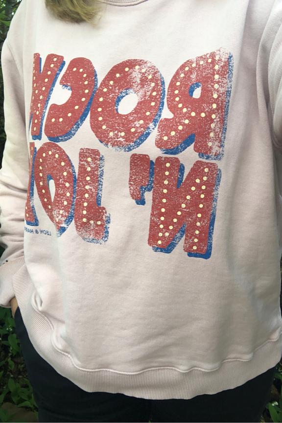 โ€ข Sweat Sortie avec inscription รฉcrite comme avec des nรฉons โ€ข Manches longues โ€ข Col rond โ€ข Print "Rock N' Joy" craquelรฉ effet vintage โ€ข Finitions bords cรดtes โ€ข Composรฉ ร  75% de coton biologique