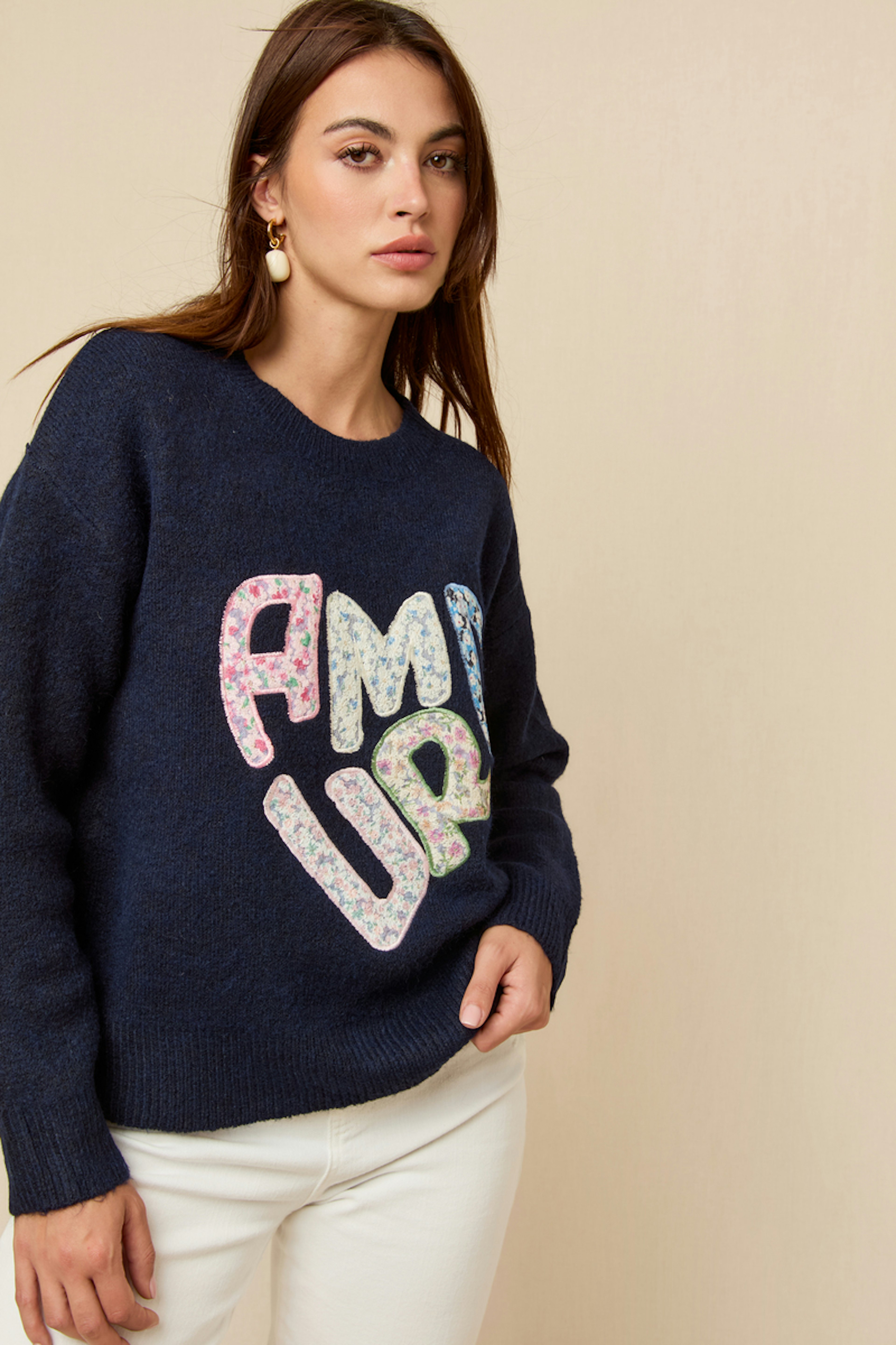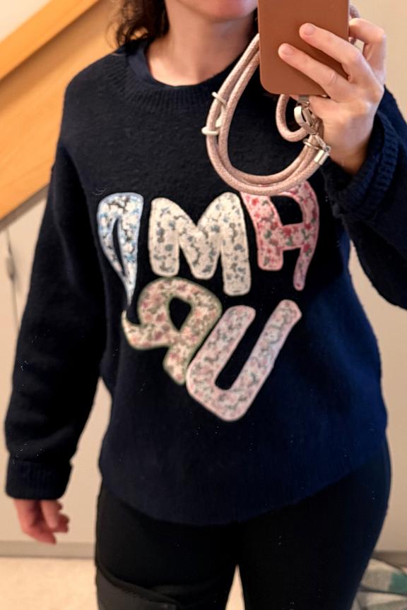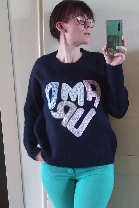 Ajoutez une touche de peps à votre tenue avec ce pull à message. Parfait avec un jean taille haute et des bottines pour un look cosy-chic cet hiver. • Pull en laine mélangée • Coupe légèrement ample • Motif imprimé • Col rond classique • Manches longues confortables