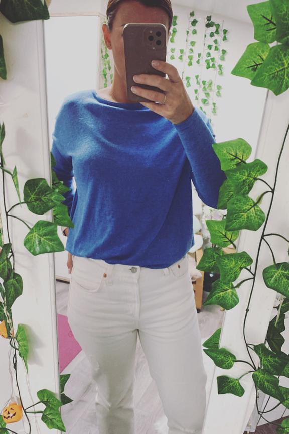 โ€ข Pull Viabella - Vila โ€ข Couleur unie bleue โ€ข Manches longues โ€ข Col classique