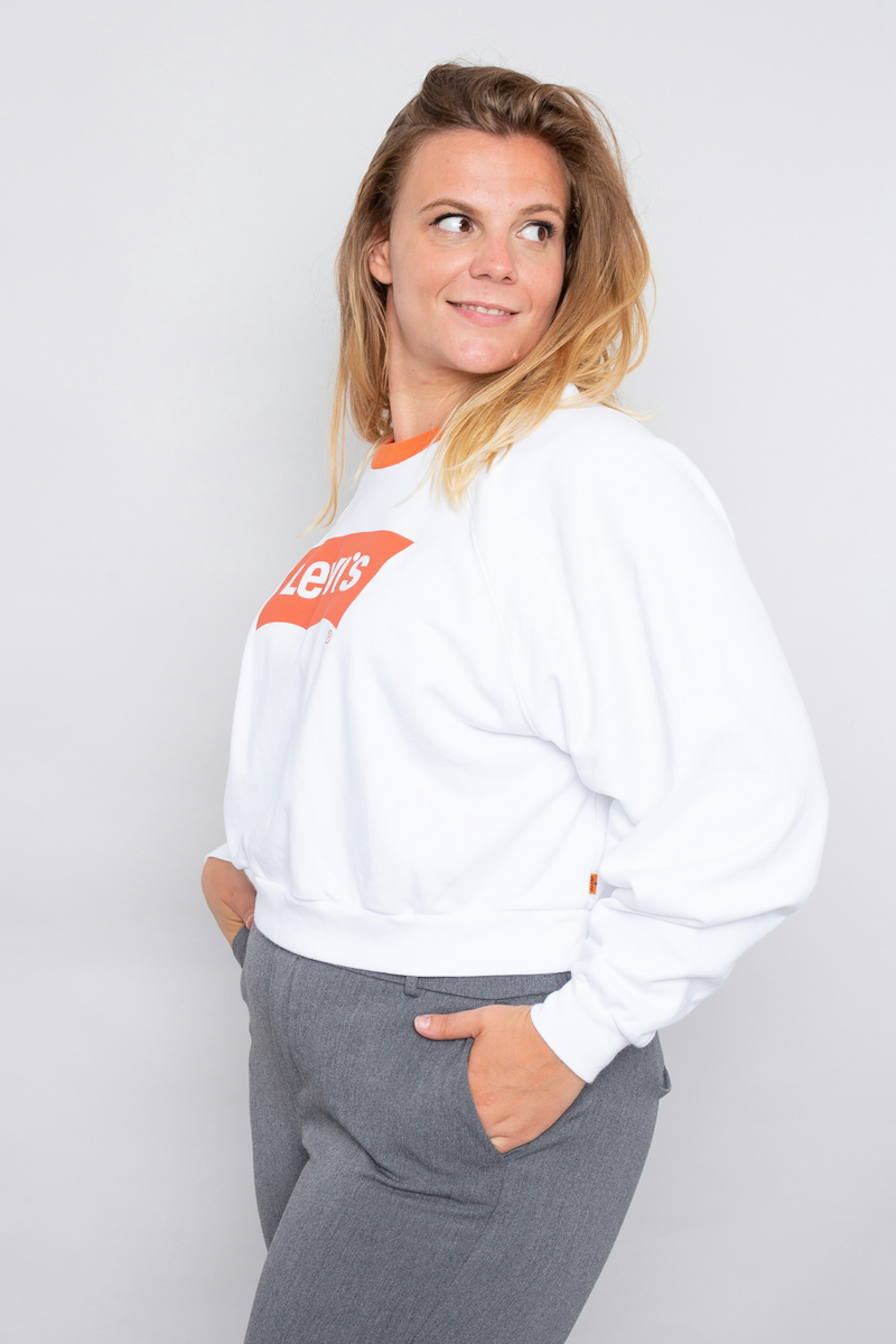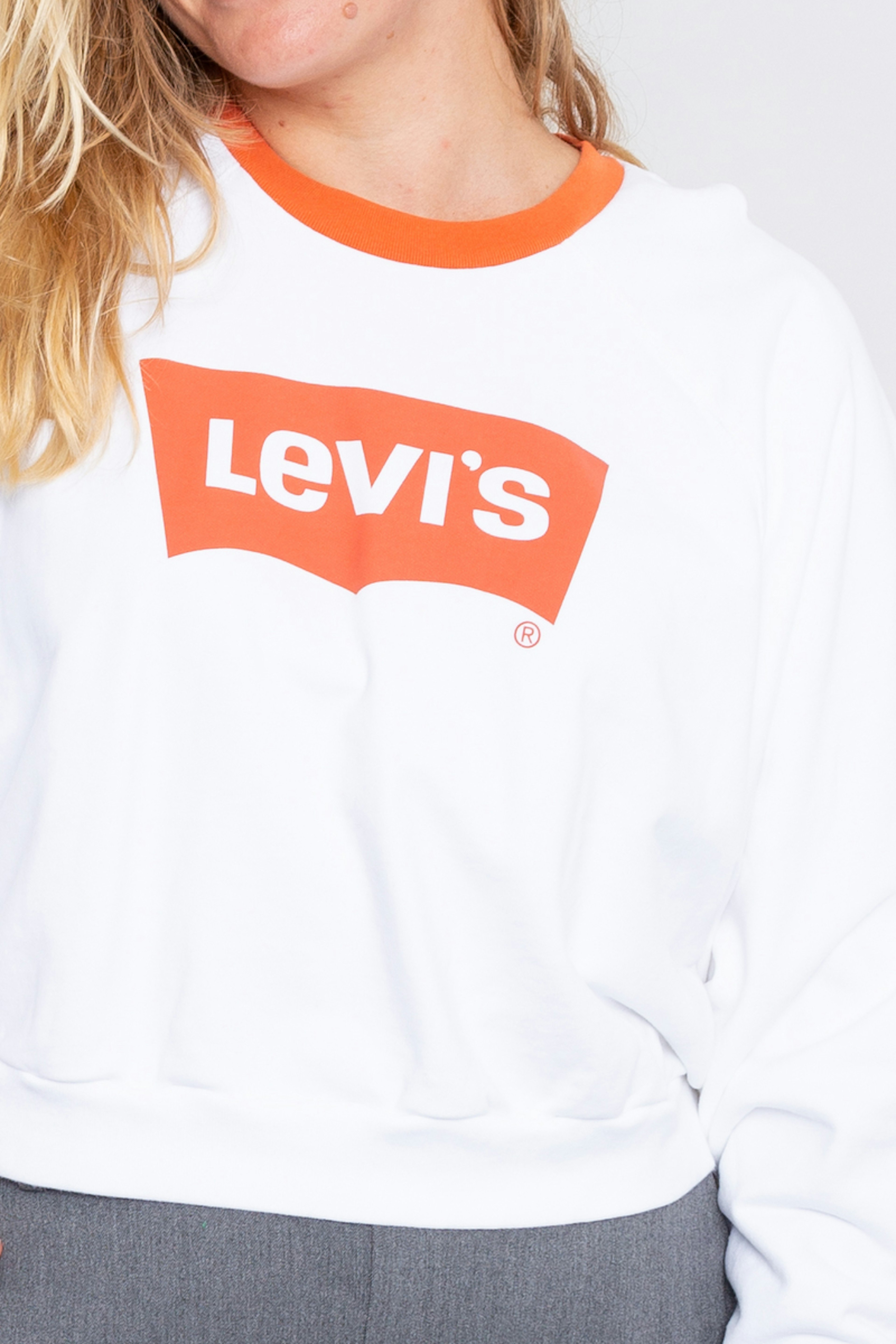 โข Sweat ร manches longues en coton blanc et orange โข Col contrastรฉ orange โข Logo Levi'sยฎ sur la poitrine โข Bord cรดte sur les manches et le bas du pull