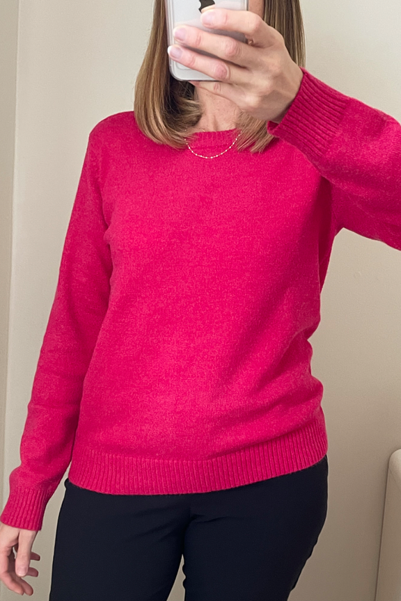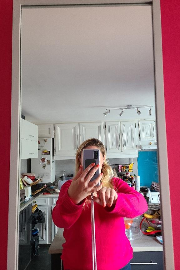 โข Pull ร manches longues en maille rouge โข Col rond โข Tissu stretch โข Maille lรฉgรจre avec finitions cรดtelรฉes โข Longueur : 62 cm en taille 38 โข Longueur des manches : 70 cm en taille 38