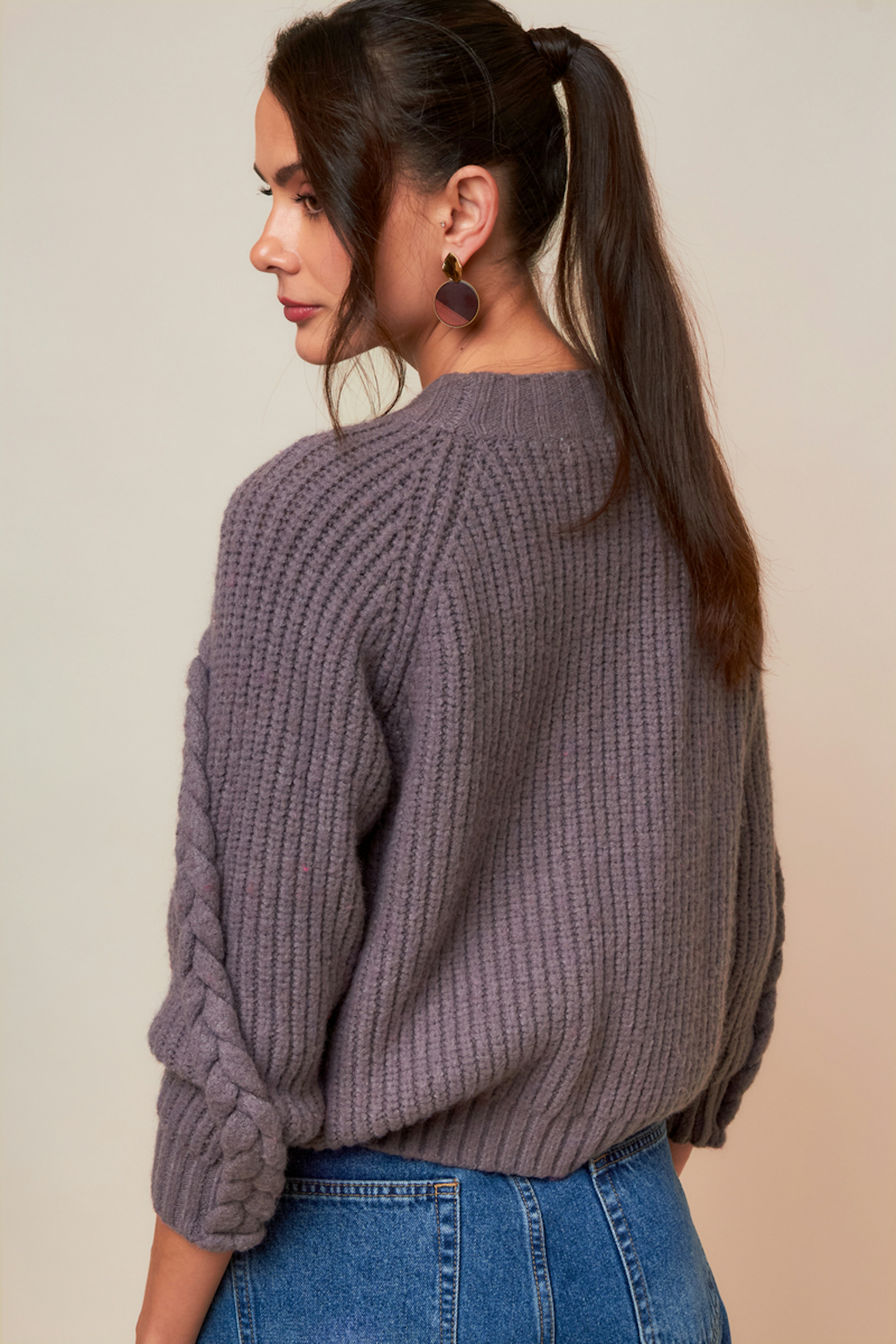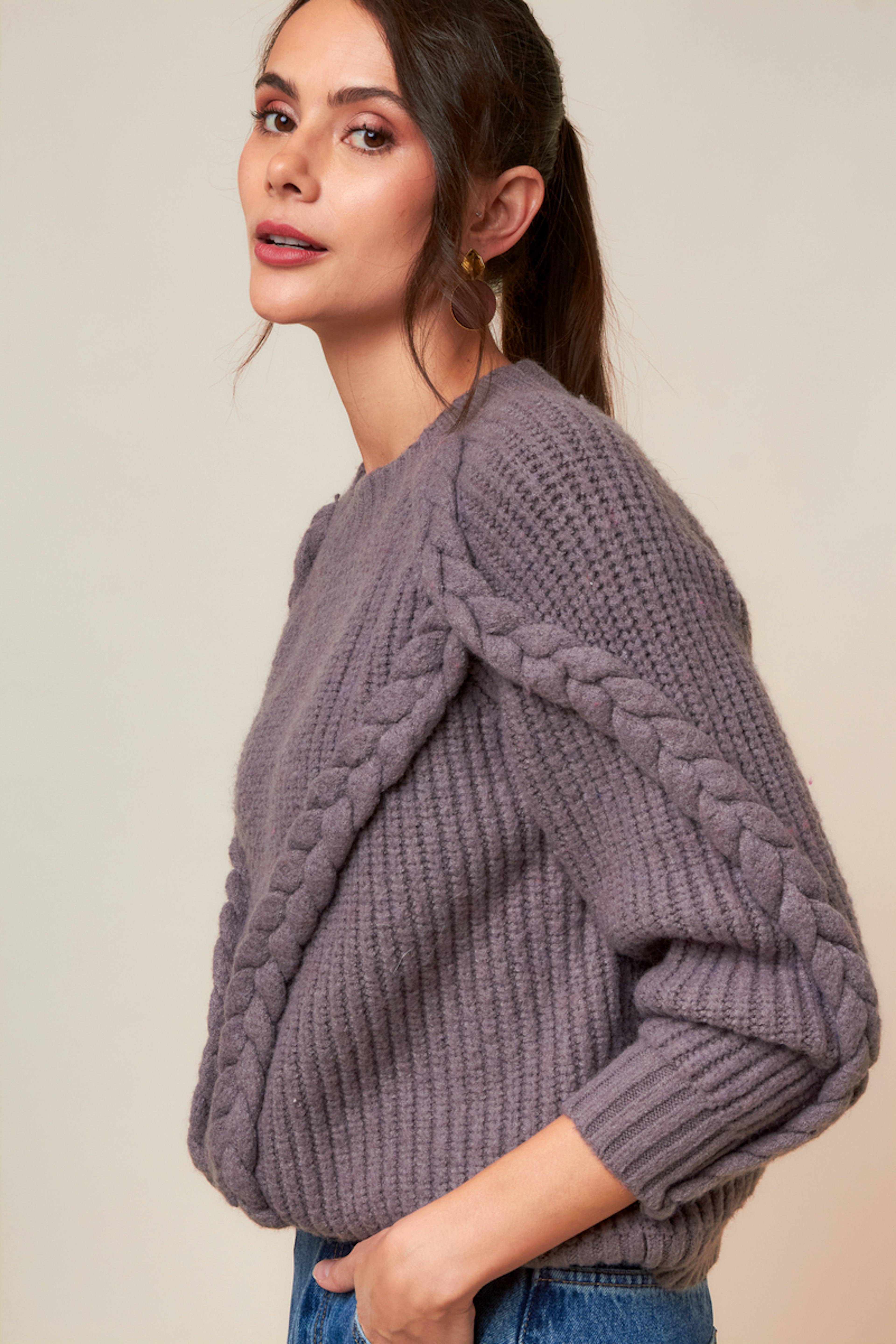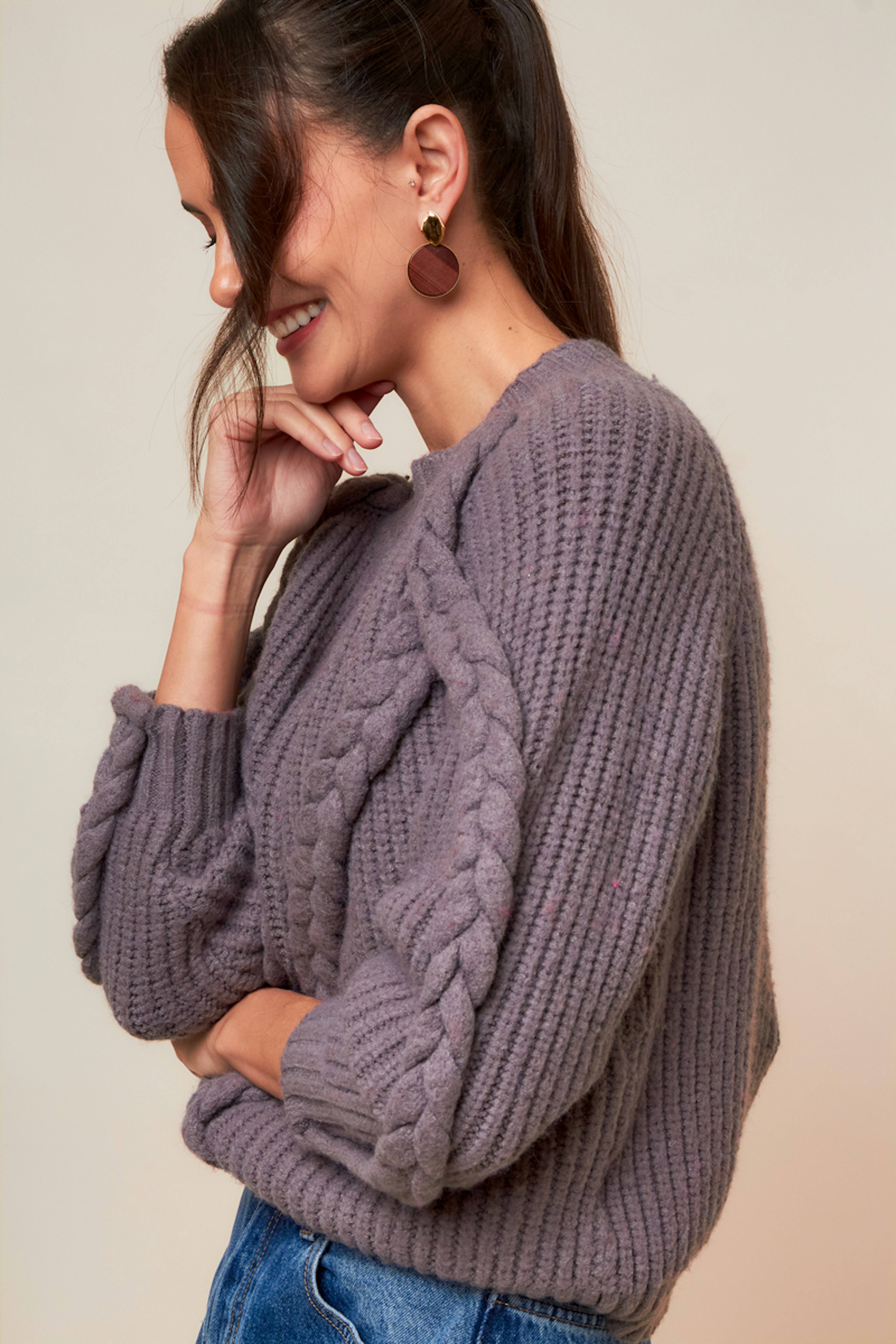 Associez ce pull gris à torsades avec un jean taille haute et des bottines en cuir pour un look élégant et décontracté. Parfait pour les journées froides d'hiver. • Pull torsadé • Col rond • Manches longues • Coupe ample • Motif torsades