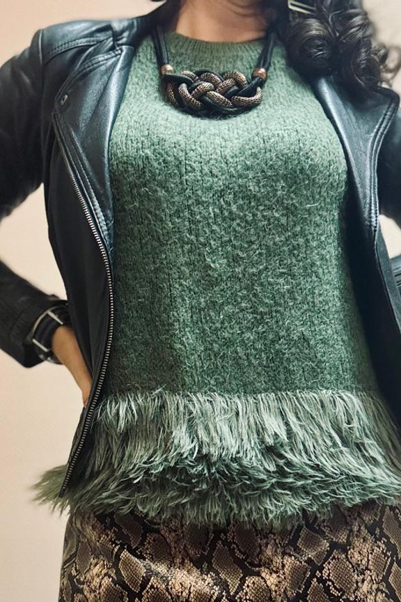 “Pull sans manche chaud malgré tout. La couleur verte est vraiment jolie.”