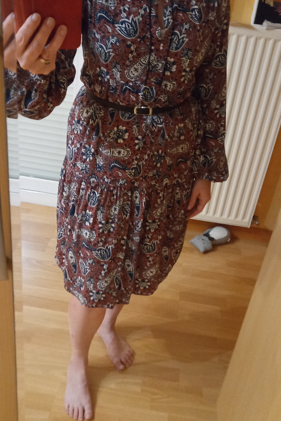 Associez cette robe avec des sandales en cuir pour une touche bohรจme chic en รฉtรฉ, ou des bottes et une veste en cuir pour un look automnal. Un choix polyvalent parfait en toute saison. โข Robe droite en viscose โข Manches longues โข Col rond avec fente โข Motif cachemire โข Ourlet au-dessus du genou