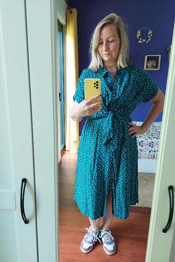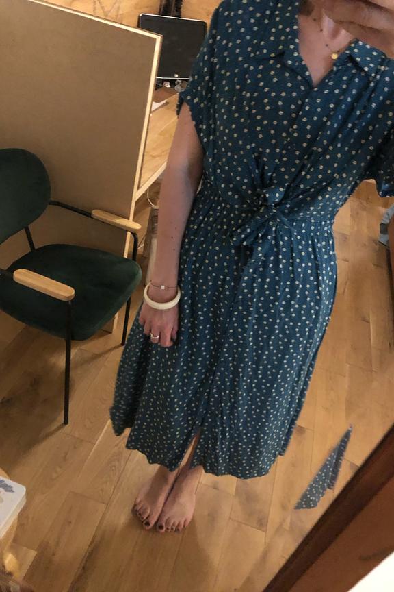 โJ'adore, confortable et jolie. Je suis trรจs fan. La couleur est moins flashy que sur la mannequin mais reste trรจs sympa. J'ai mis "taille grand" parce qu'elle a une taille รฉlastique pas trop serrรฉe, j'aurais presque pu prendre une taille en dessous alors que d'habitude je prends plutรดt du 40 (je fais un "petit" 40).โ