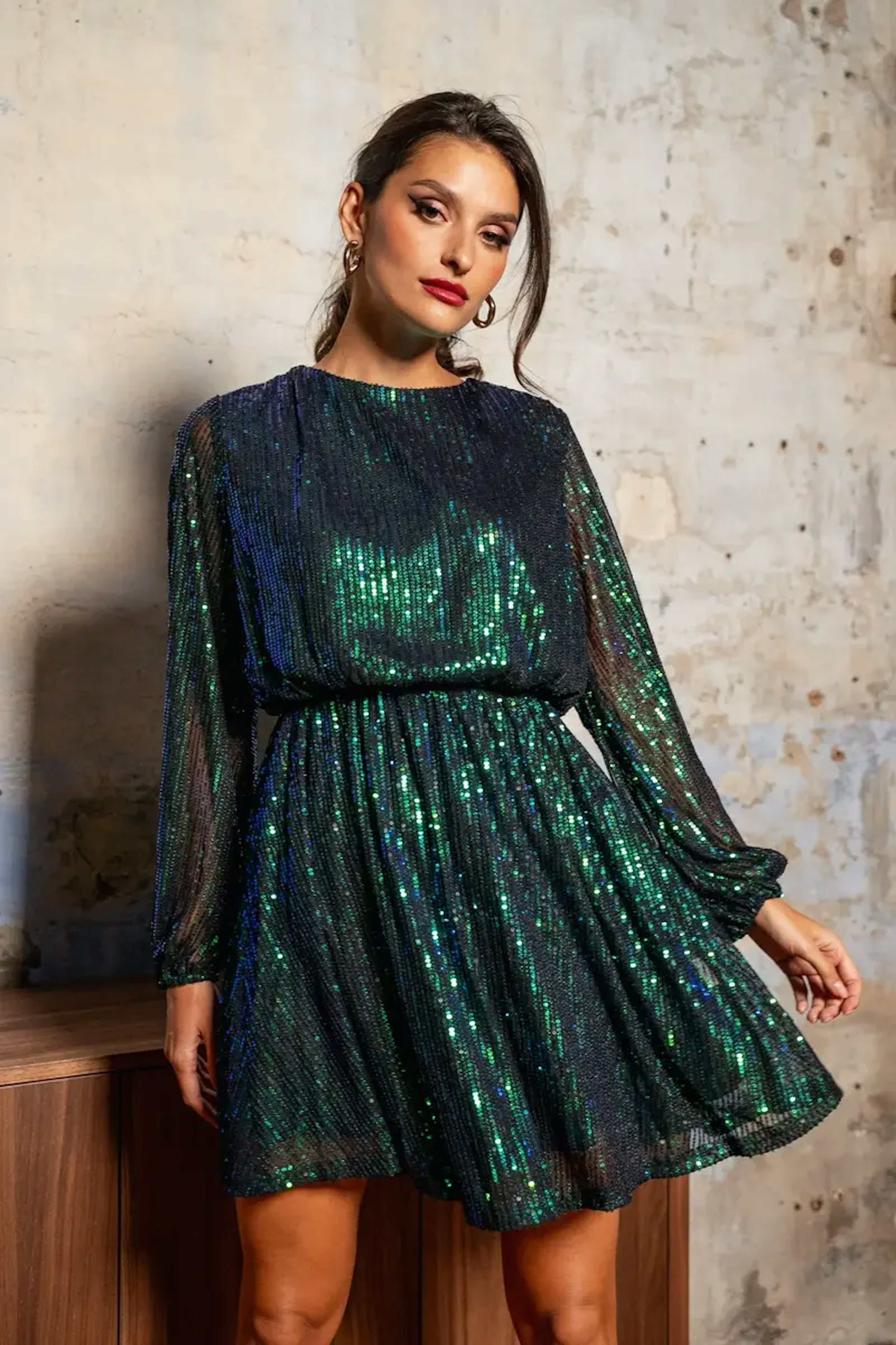 Plongez dans l'élégance avec notre robe Apolline verte brillante. Sa coupe effet patineuse flatteuse et sa teinte vibrante capturent la lumière de manière glamour. Cette robe incarne le glamour avec une touche moderne. Parfaite pour des occasions spéciales où vous souhaitez briller et affirmer votre style distingué. • Robe courte effet patineuse • Manches longues • Col rond et épaulettes • Dos en V avec fermeture nœud • Silhouette marquée à la taille