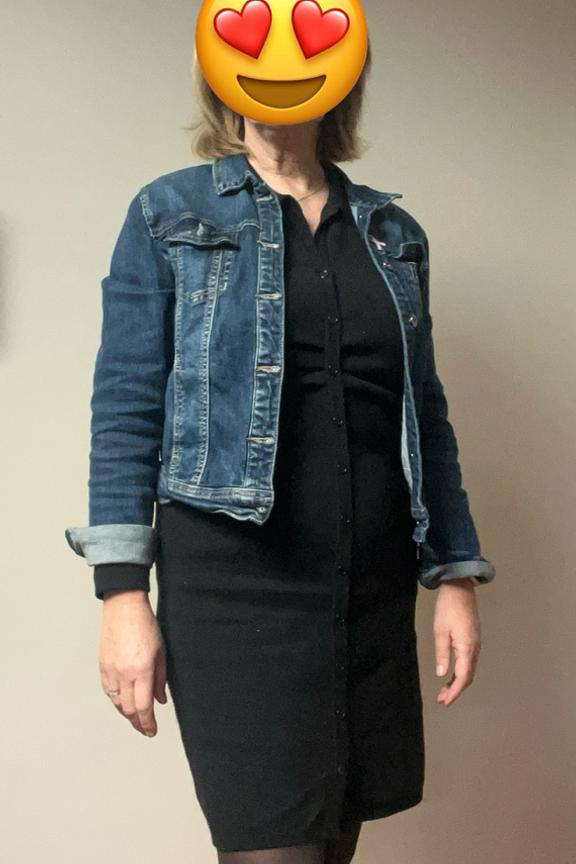“La laine est belle. Le devant est un faux boutonnage ce qui fait qu’il n’y a pas de possibilité de se retrouver avec un bouton qui saute 😉. Je l ai mise avec une veste en jean.”