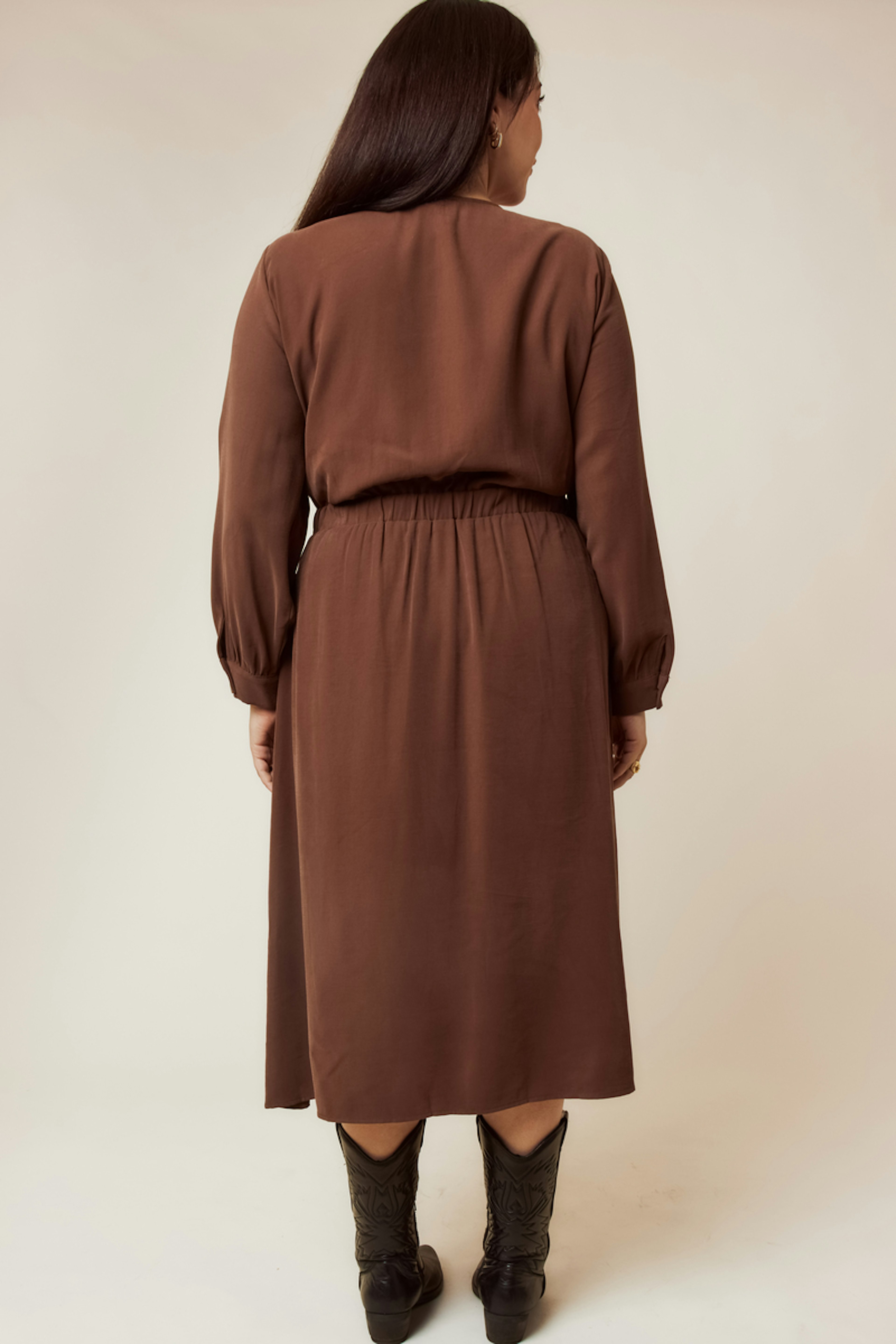 Associez cette robe avec des bottes hautes et un manteau structuré pour un look chic parfait pour l'hiver. • Robe portefeuille • Décolleté en V • Manches longues • Fente sur le côté • Taille ceinturée
