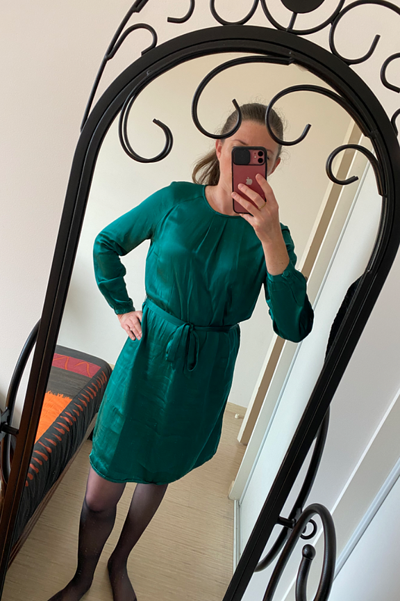 โ€ข Robe verte en satin de viscose dos nu โ€ข Dos ouvert en coupe asymรฉtrique โ€ข Col rond โ€ข Manches longues nouรฉes aux poignets โ€ข Coupe droite โ€ข En satin de viscose: matiรจre fluide et douce โ€ข Couleur unie vert sapin โ€ข Taille marquรฉe par une ceinture en tissu ton sur ton โ€ข Dรฉtails de jeu de plis sur le haut โ€ข Coupe droite et fluide
