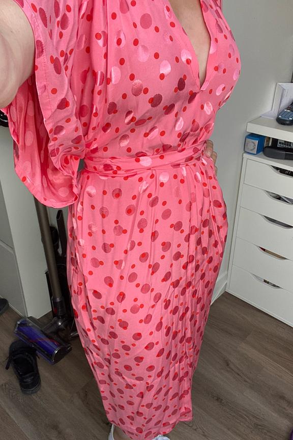 โmagnifique robe qui plait vraiment ;tissu soyeux trรจs doux j ai aimer porter cette robeโ