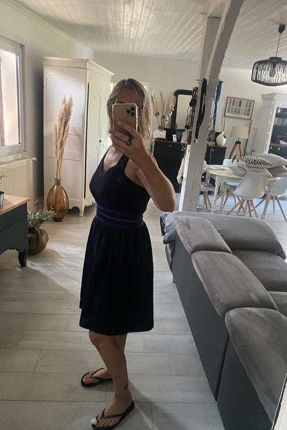 โSuper jolie cette robe. La coupe est extra. Par contre, effectivement, le tissu accroche les cheveux et autres poussiรจres. C'est dommage, ร ce prix, je l'aurais gardรฉe...โ