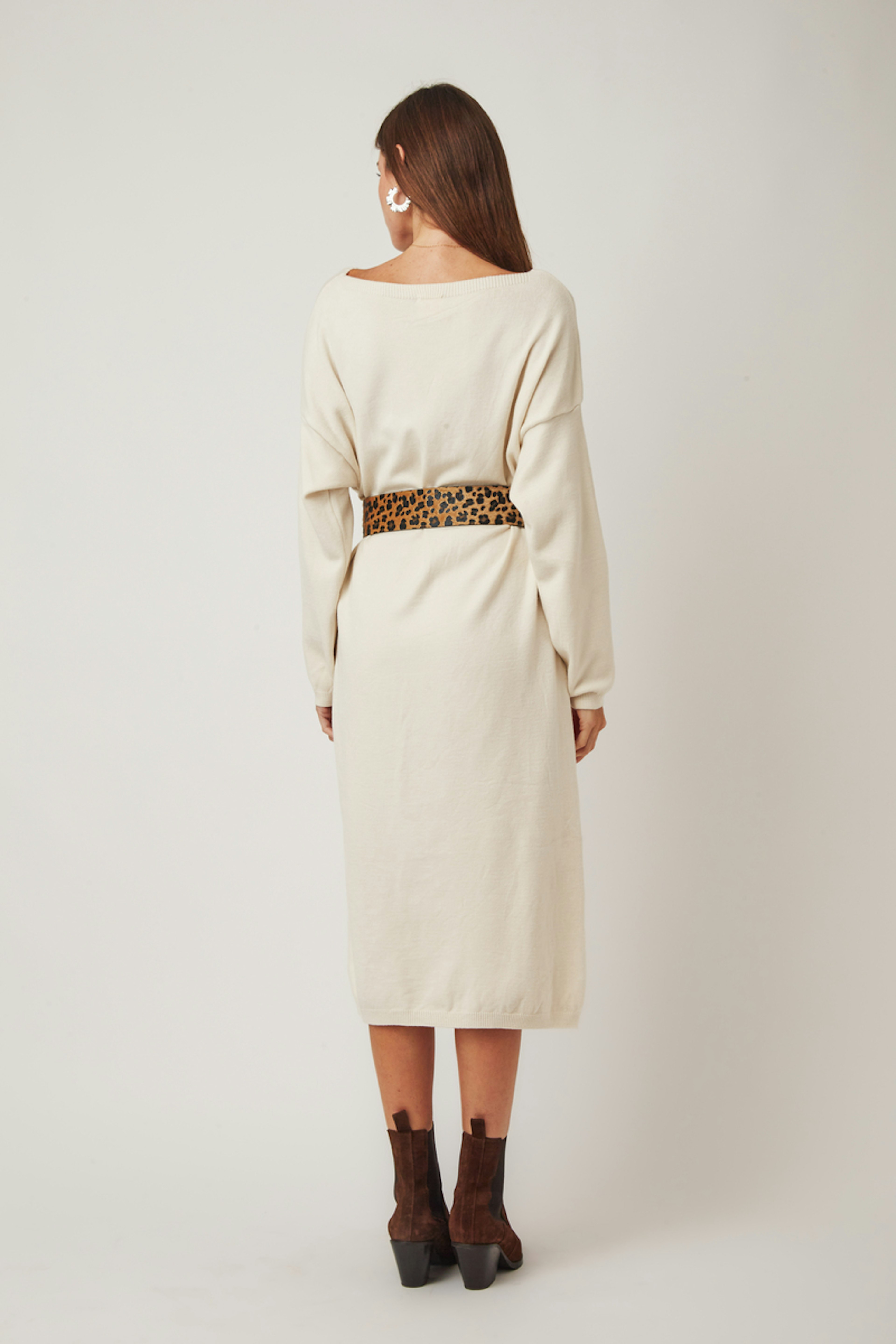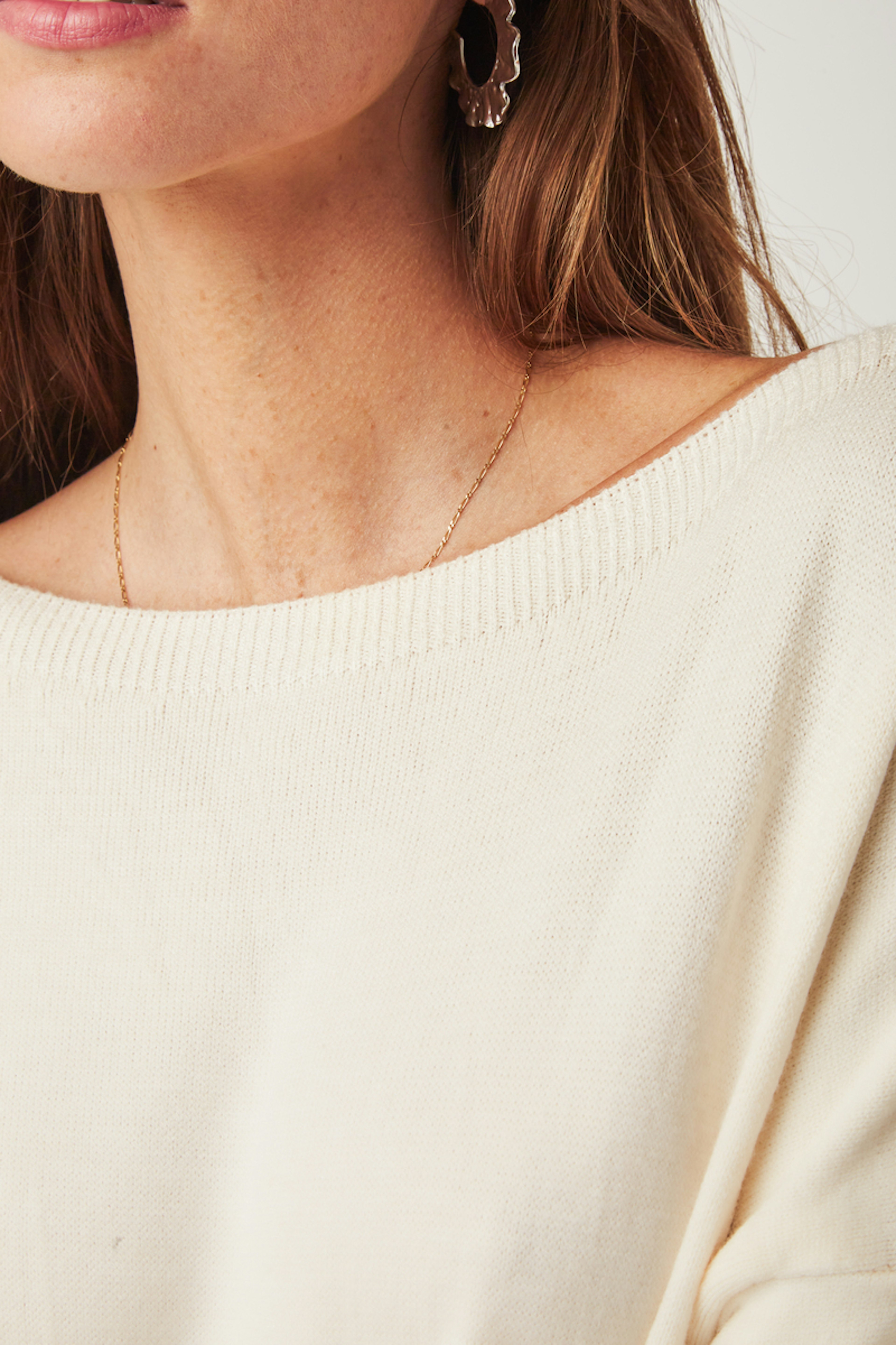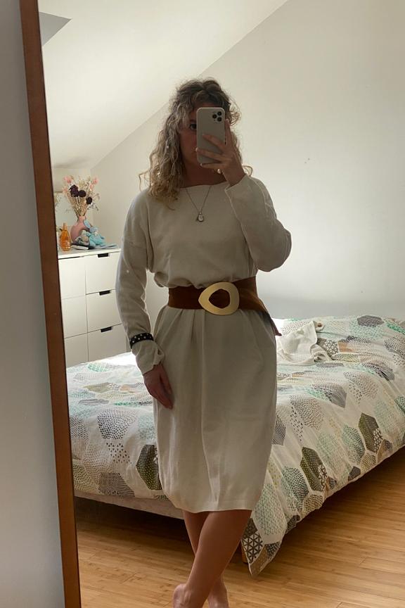โข Robe pull longue โข Couleur ecru โข Coupe droite โข Manches longues โข Col rond