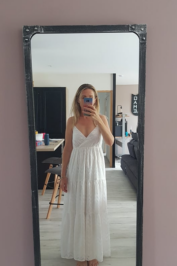 โMagnifique robe qui est plus habillรฉe qu'il n'y parait sur la photo du mannequin. Pourrait convenir pour un mariage ou autre cรฉrรฉmonie. Elle est ร la bonne taille mais malheureusement, avec ma petite poitrine, je ne peux pas la porter, car il faut oublier le soutien-gorge. Sur la photo que j'ai prise, j'ai mis un soutien gorge, mais il se voit au moindre mouvement (dans le dos et au niveau de la poitrine). Idรฉale pour un joli dรฉcolletรฉ avec poitrine consรฉquente par contre, je recommande vivementโ