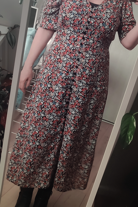 โข Robe longue en viscose โข Imprimรฉ fleuri โข Reserrรฉe ร la taille et boutonnรฉe tout du long โข Manches courtes โข Bas de manche large reserrรฉ