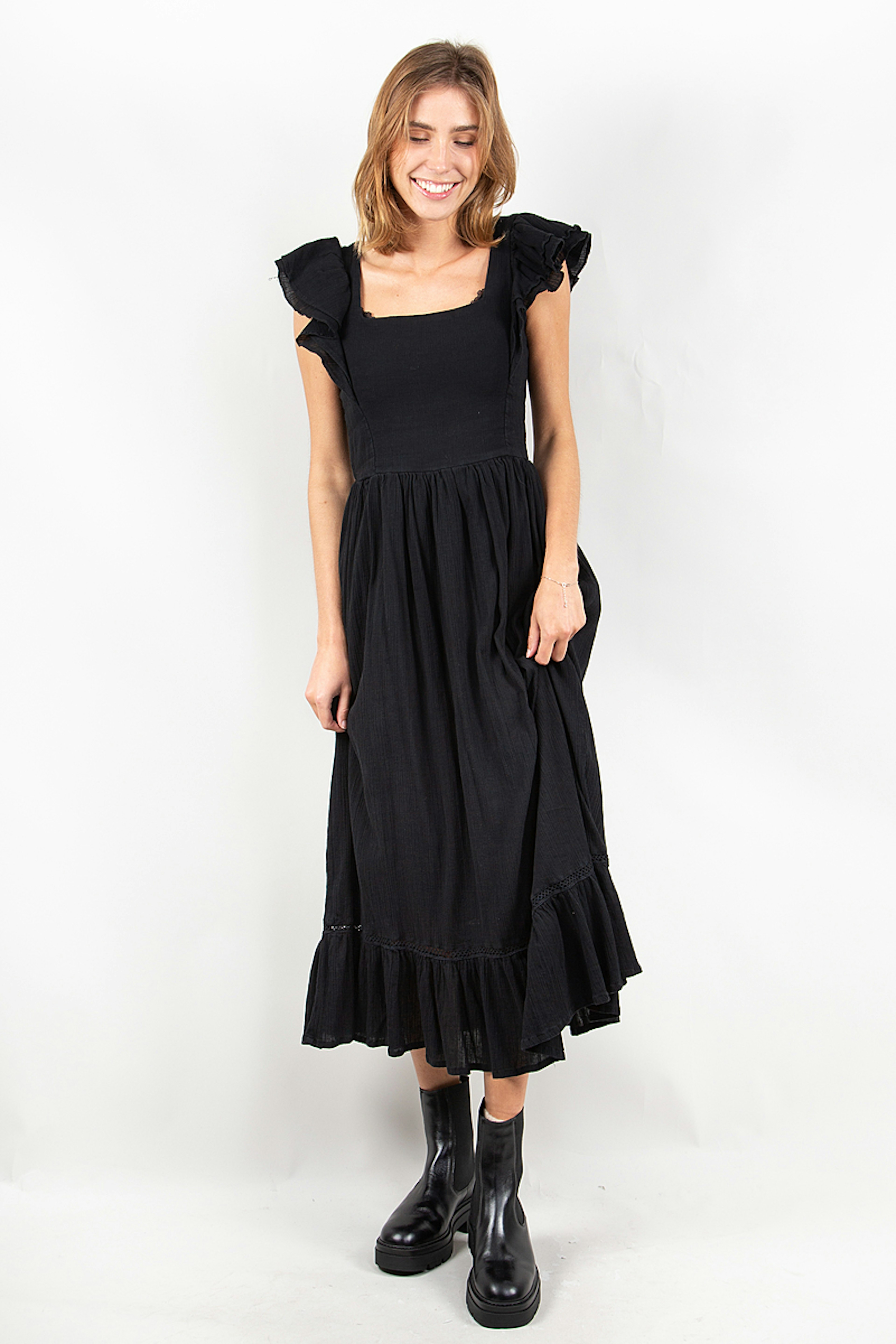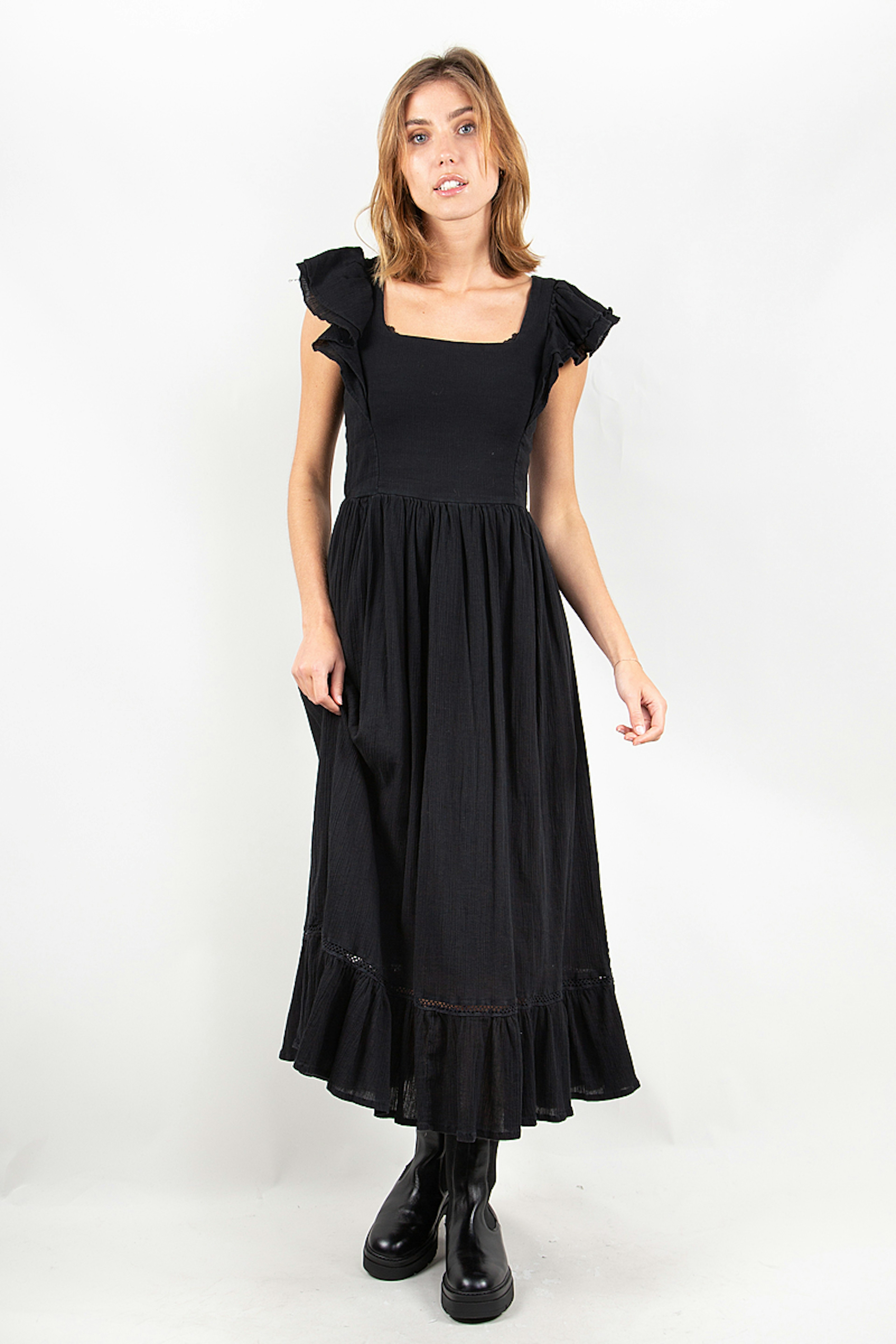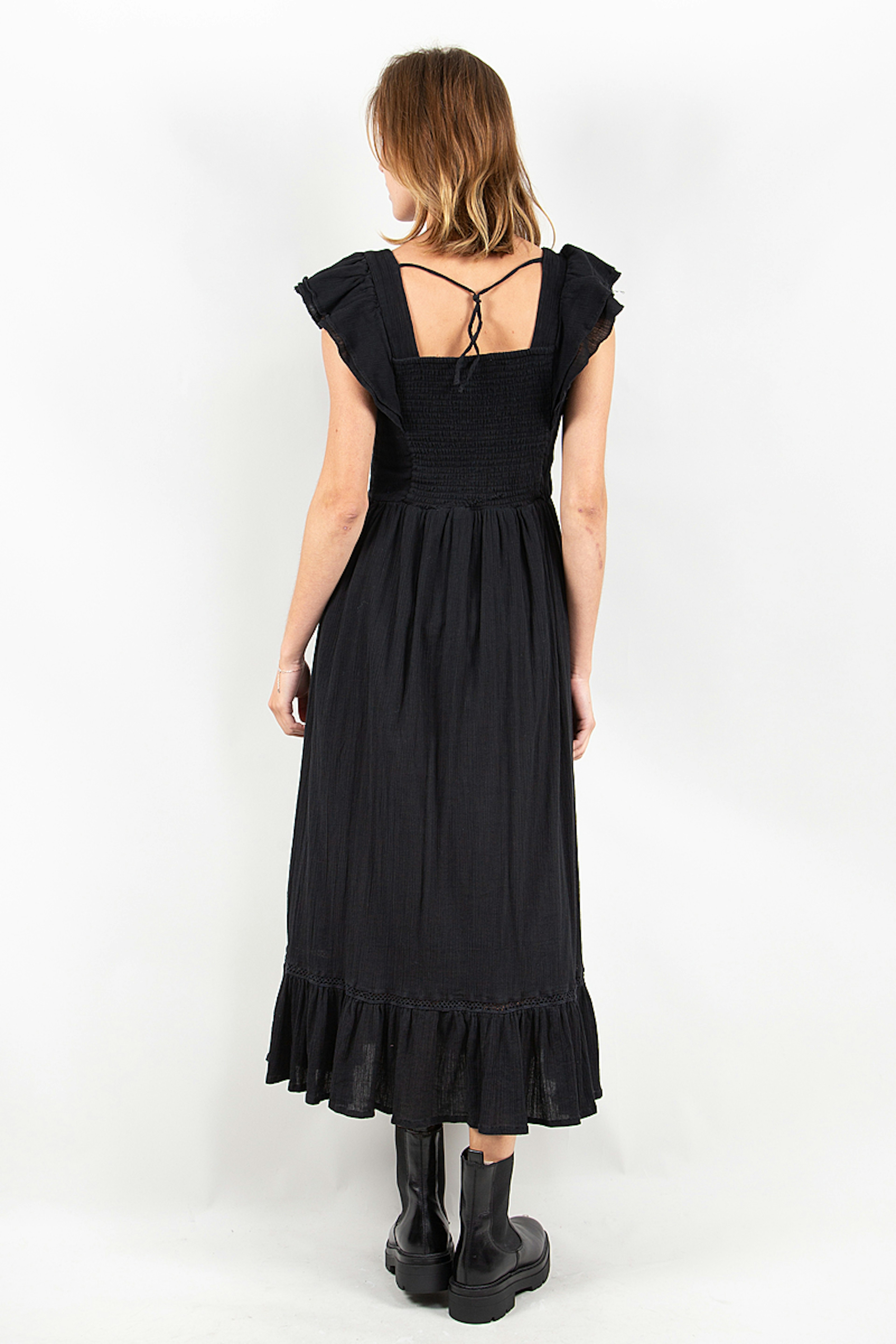 Craquez pour cette robe noire en coton lรฉgรจre. Idรฉale pour les fortes chaleurs ! Cette robe est conรงue en coton bio.