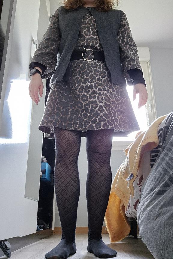 Associez cette robe avec des bottines en cuir et une veste en jean pour un look chic et décontracté, parfait en toute saison. • Robe courte • Imprimé léopard • Manches 3/4 • Coupe droite • Col rond